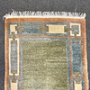 Handknuten polykrom matta med geometriskt mönster.