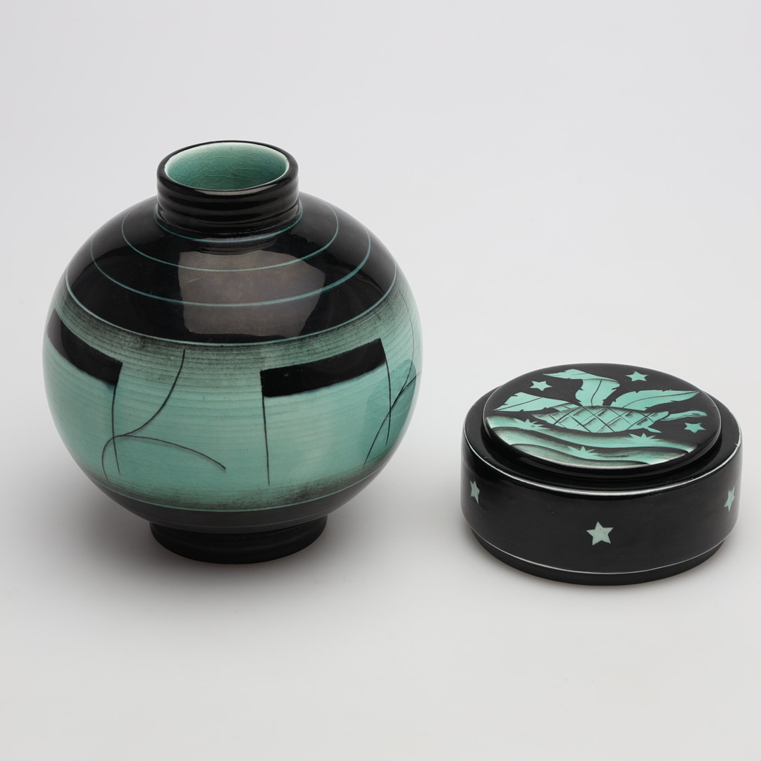 3691376. ILSE CLAESSON. VAS samt LOCKASK, keramik, Rörstrand.