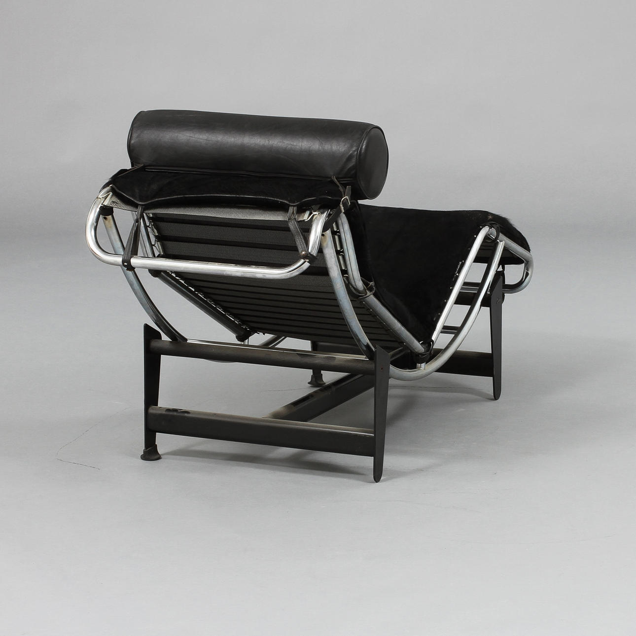 Stomme förkromat stål med dyna klädd i svart kohud.