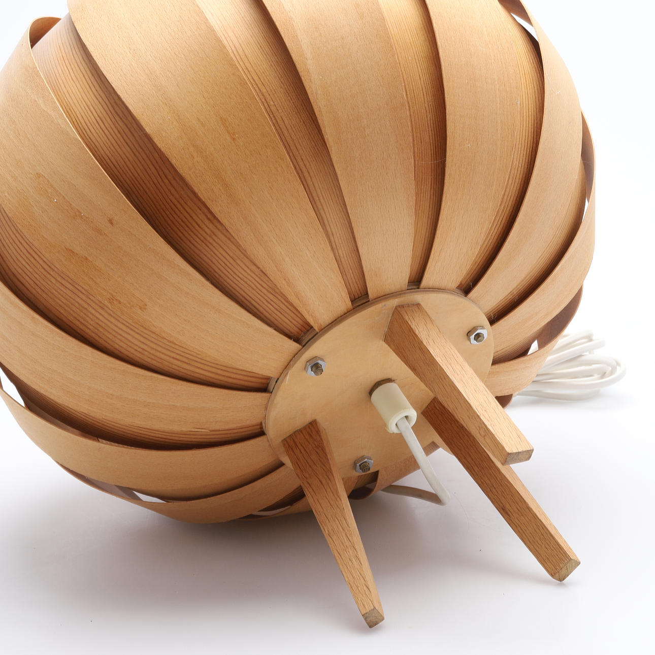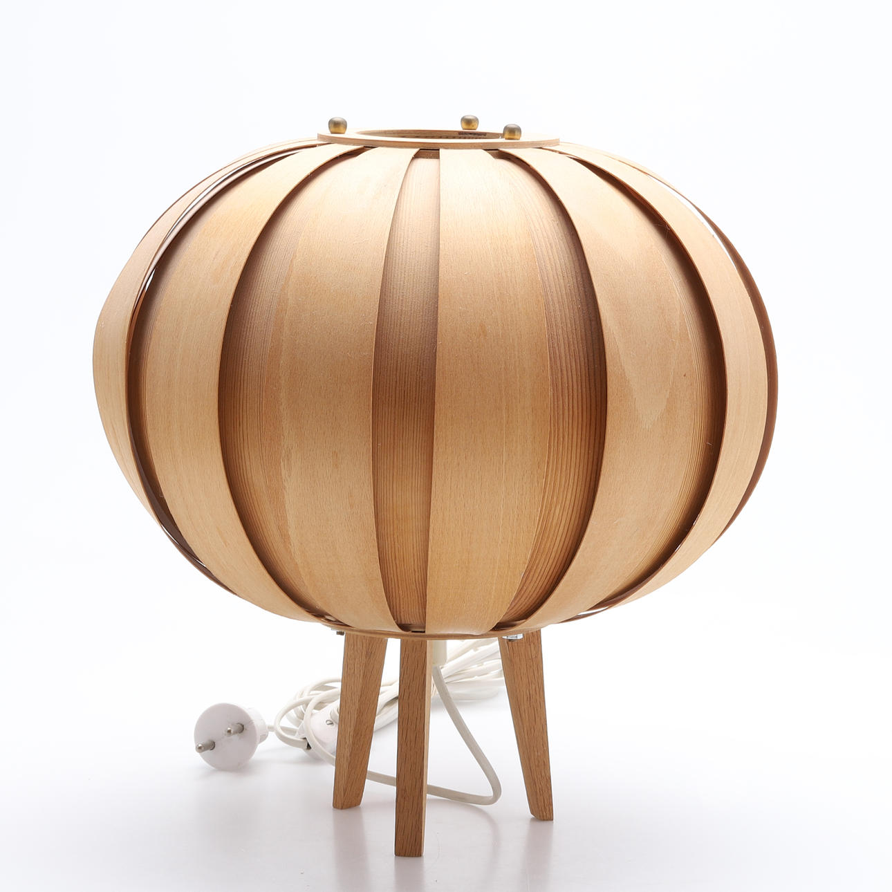 Trälameller. Ben av ek. Diameter ca 33, höjd 35 cm.