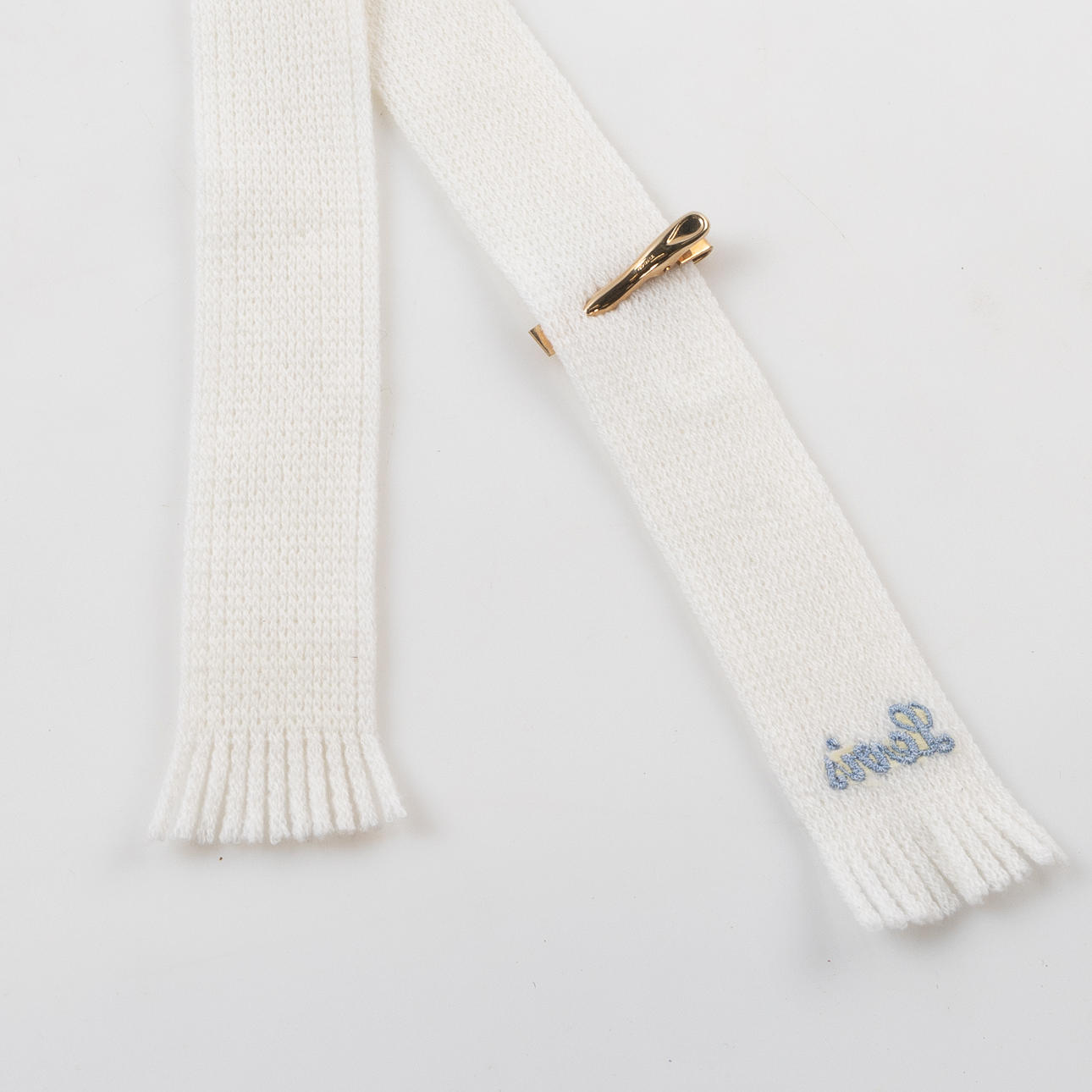 Stickad vit slips med Levi's logga, längd ca 124 cm.