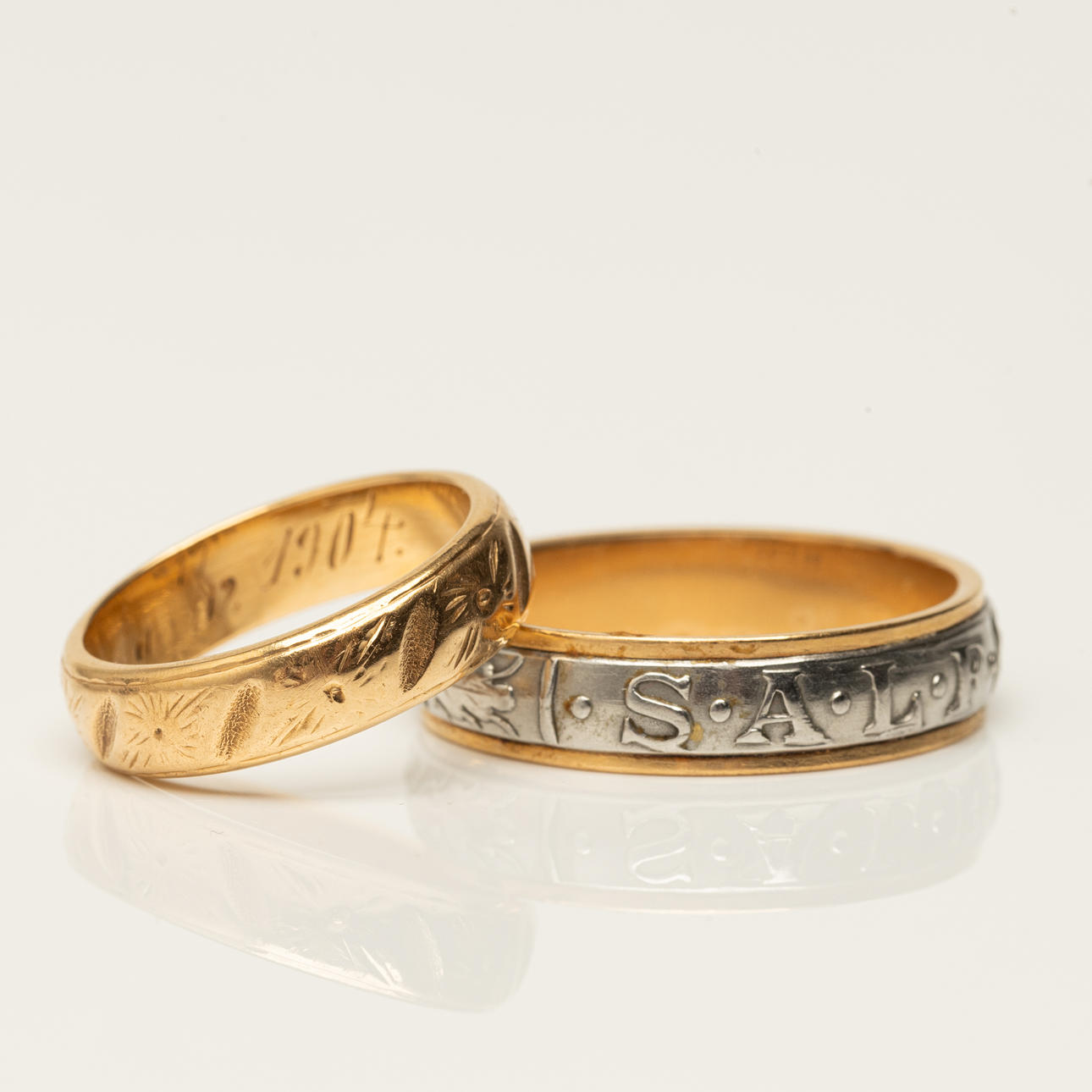 3698164. RINGAR, 2 st varav en ingenjörsring, guld, 18k.