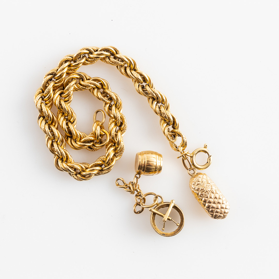 3698305. ARMBAND, Berlocker, 18K guld.