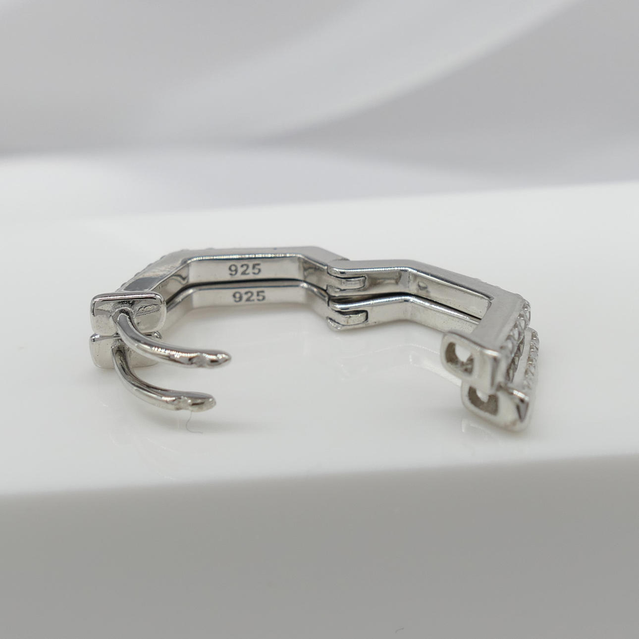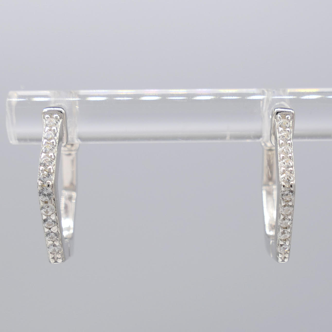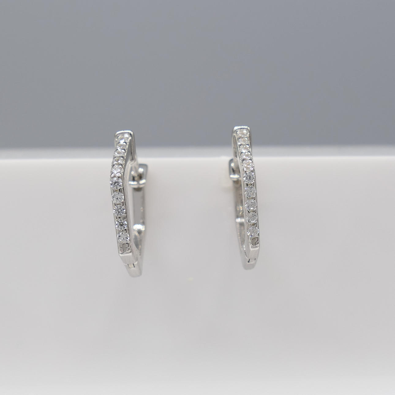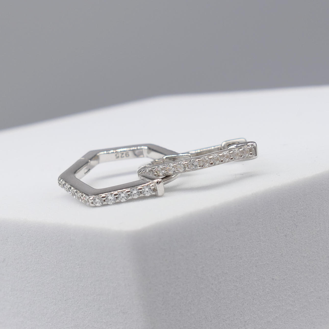 Ett par 6-sidiga ringörhängen i sterlingsilver med runda vita kubiska zirkoniumpärlor.