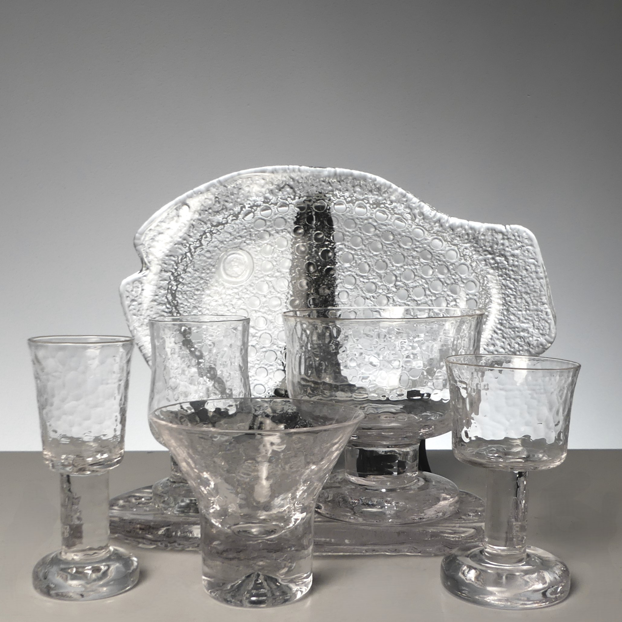 3699404. GÖRAN WÄRFF. GLAS, 19 delar, Pukeberg. "Rustika". 3 fat Pukeberg.