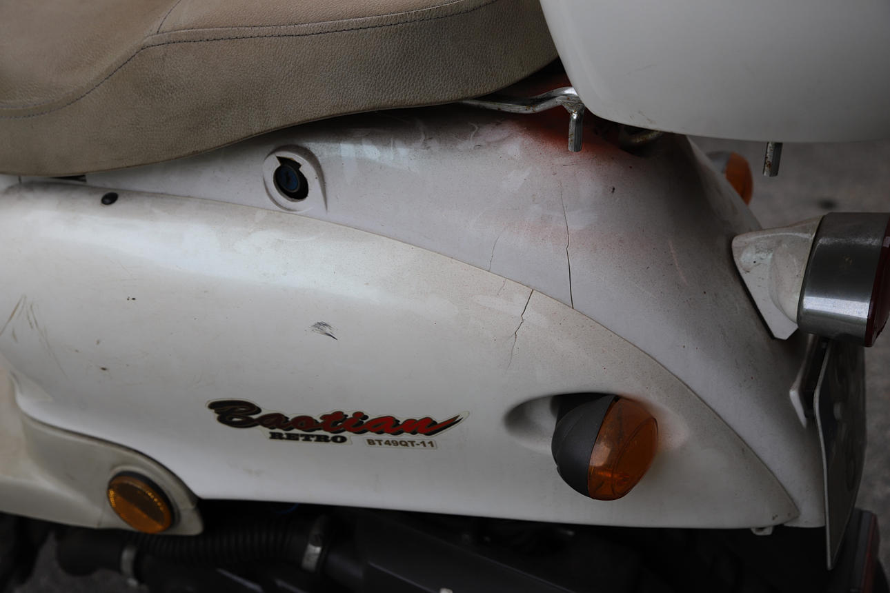 Startar ej. Ordentlig översyn behövs. Sprickor i plast. Slitage, skador. En blinkers saknas.