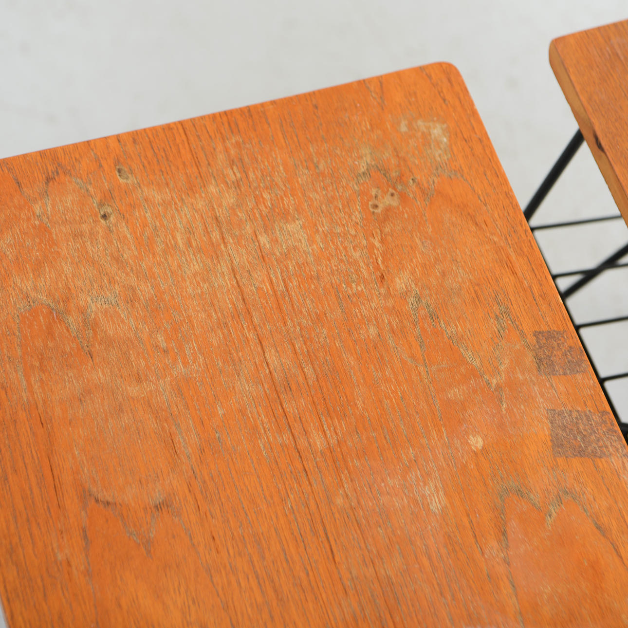 Sängbord med teakskiva samt stomme i metall. 52 x 31 cm. Höjd 49 cm.