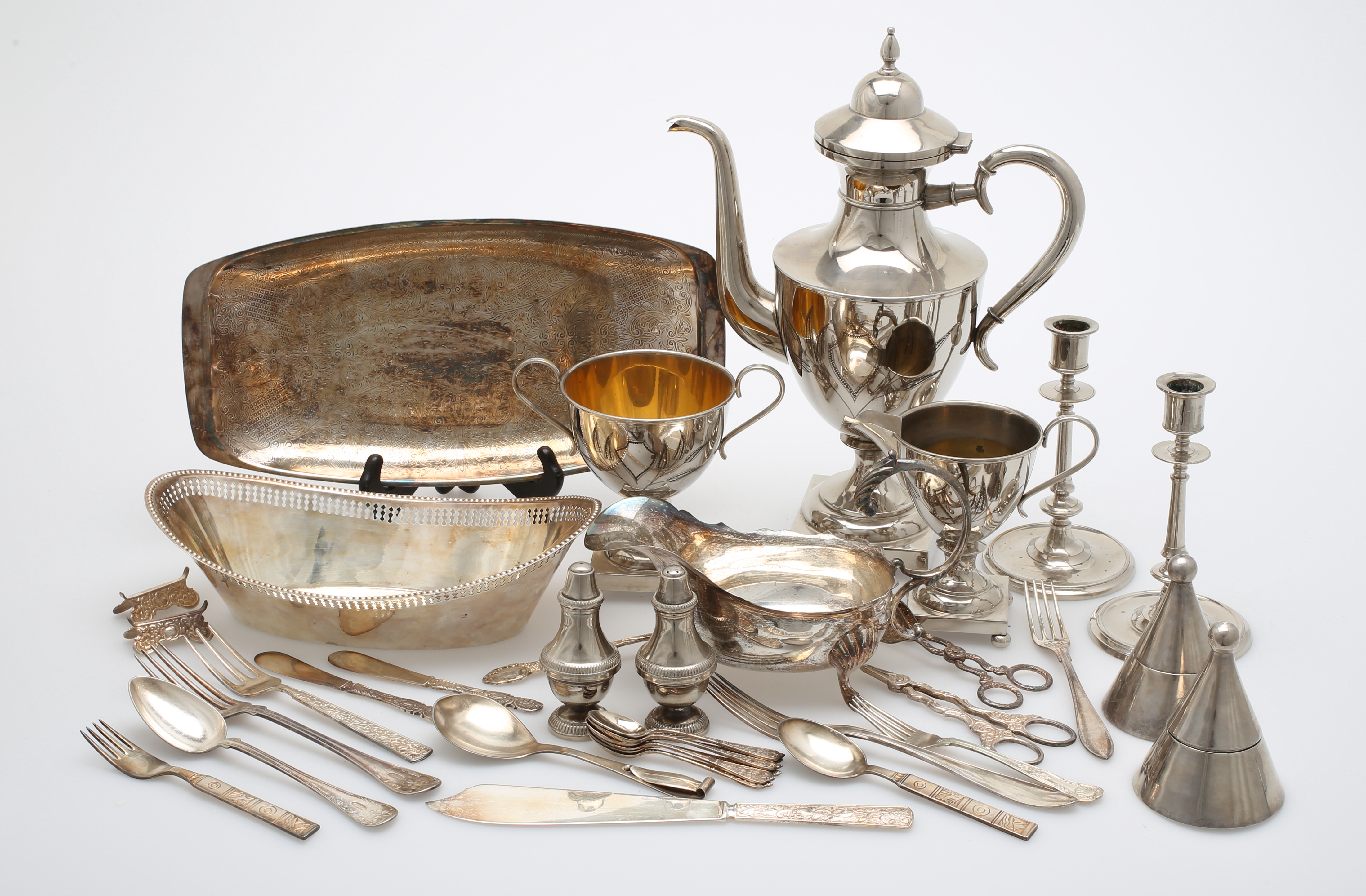 370634. PARTI NYSILVER och NICKELFÖREMÅL.