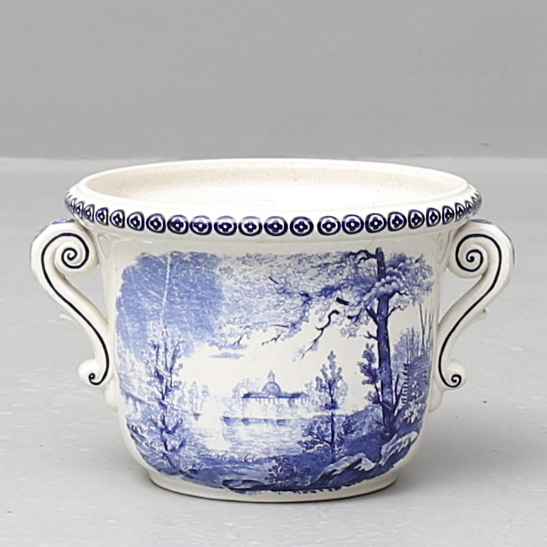 370796. YTTERFODER/URNA i flintgods, blå-vit, Rörstrand.