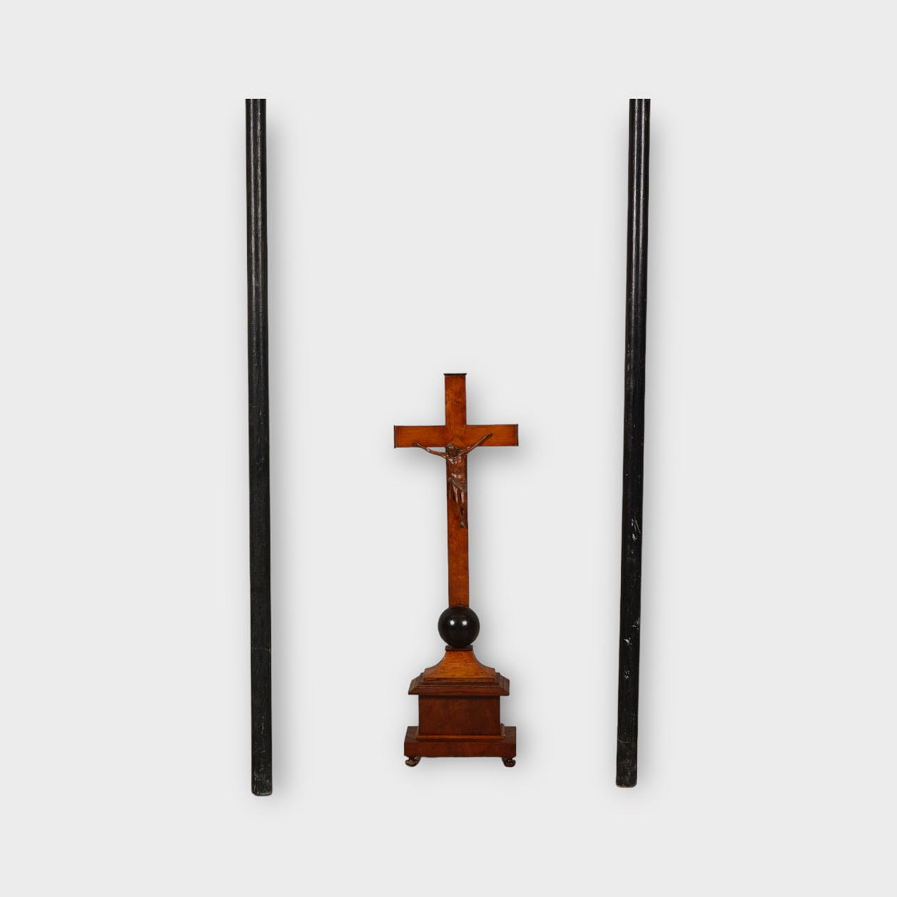 3708628. KRUCIFIX SAMT PELARE, 3 delar, 1900-tal.