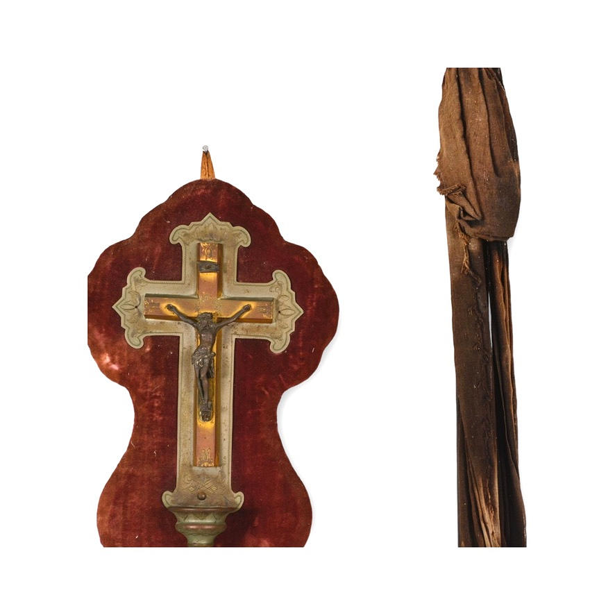 KRUCIFIX SAMT PELARE, 3 delar, 1900-tal.
