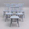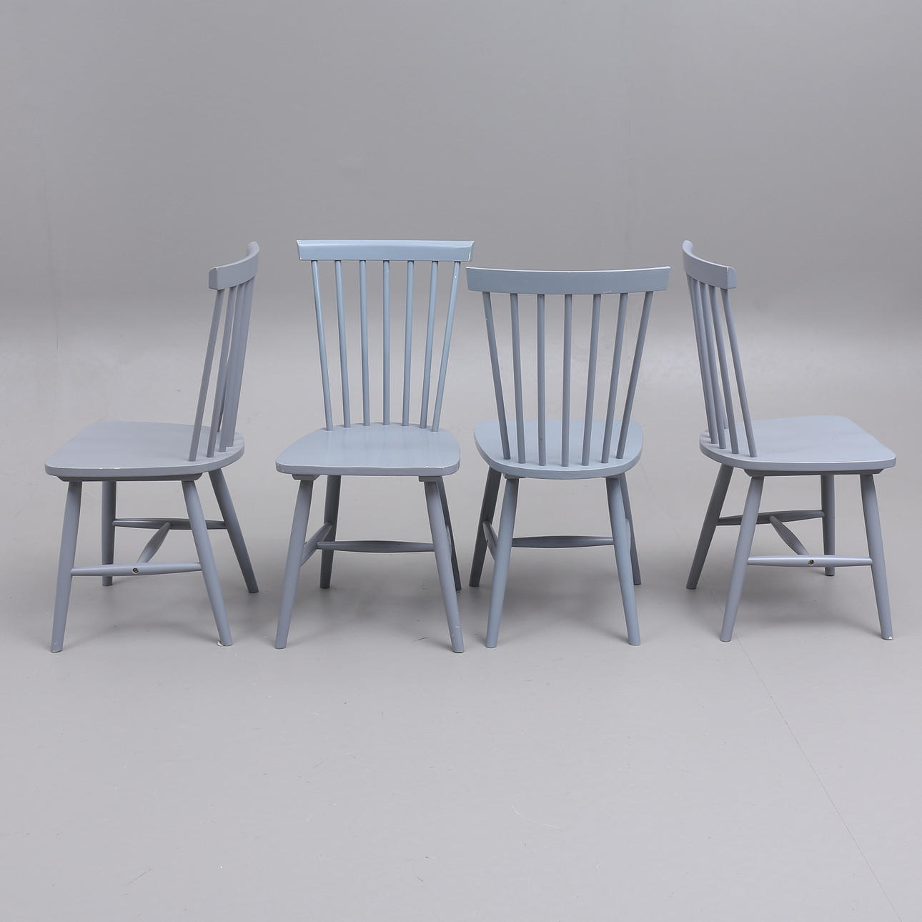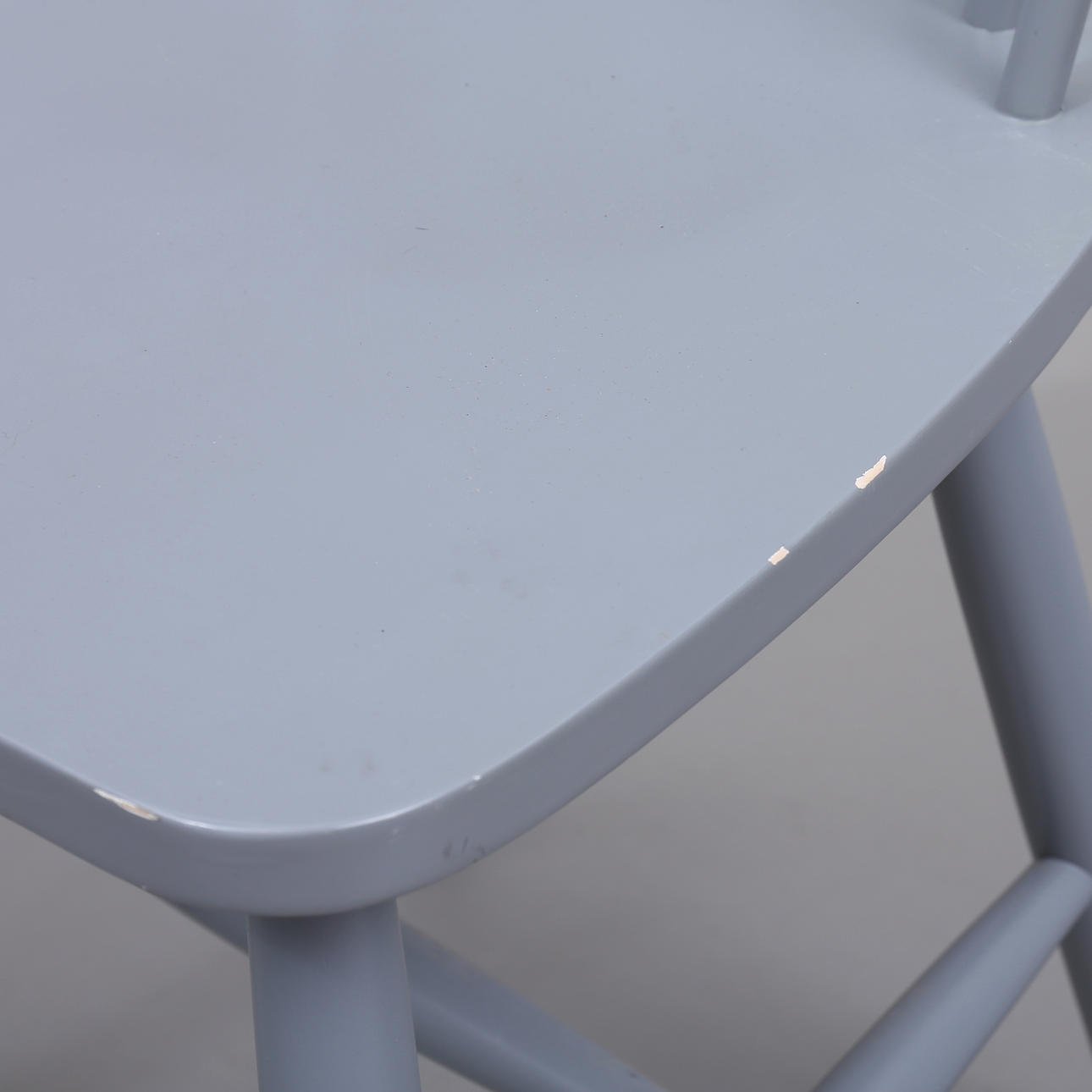 En stol med skada/lagning på sits Färgskav, fläckar, repor.