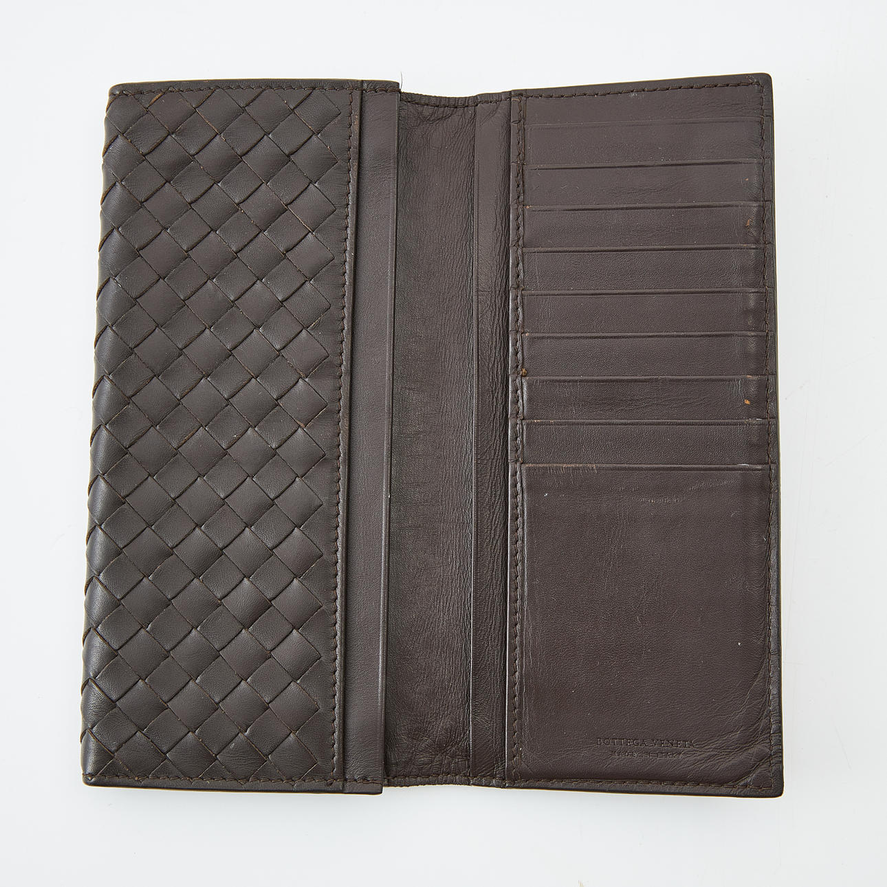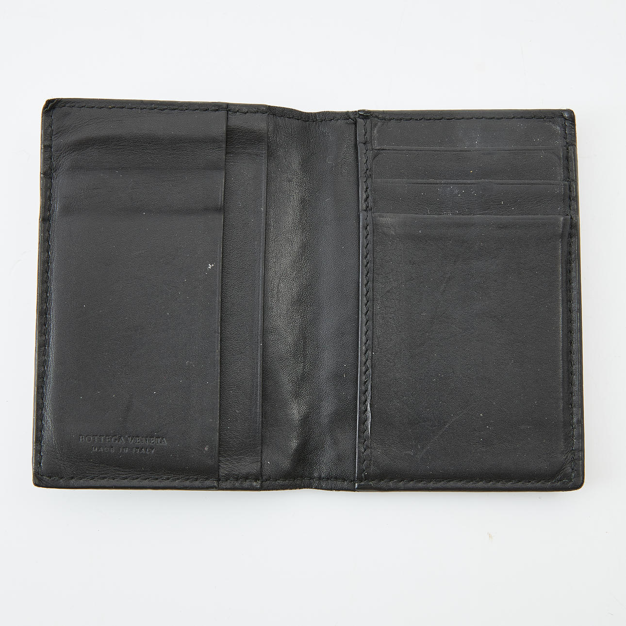 I flätad nappaläder, märkta "Bottega Veneta made in Italy", mått ca 18x9 och 11x8cm.