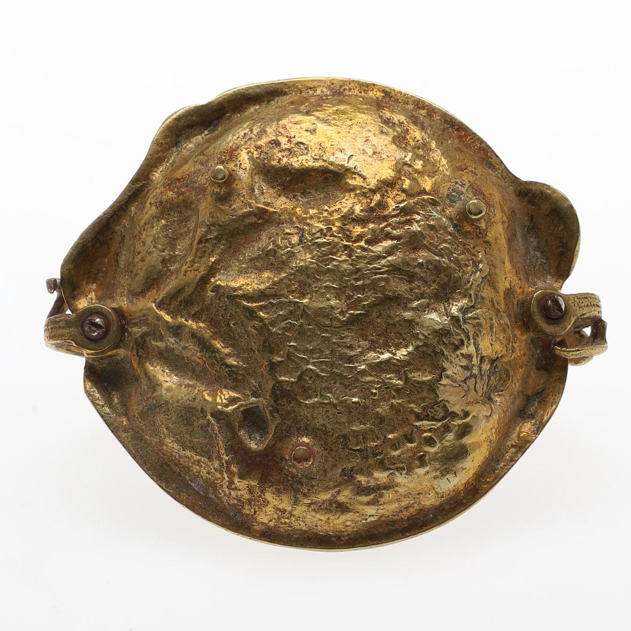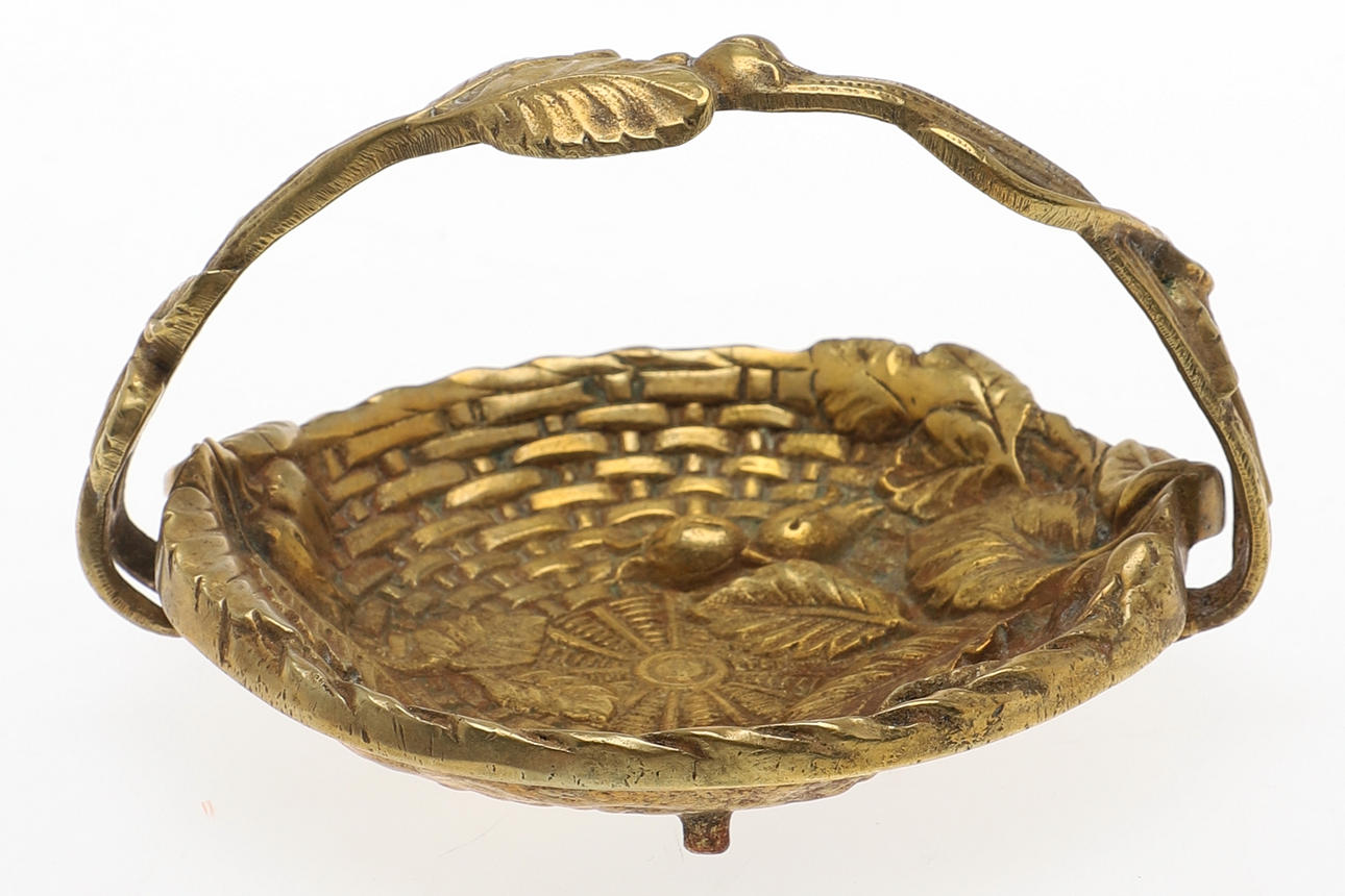 Korg av mässing med dekoration av löv. Mått ca 12x10 cm, höjd ca 7 cm.