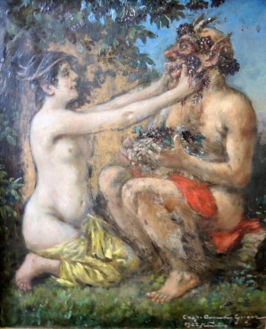 371761. CASPAR AUGUSTIN GEIGER. MÅLNING, nymf med faun.