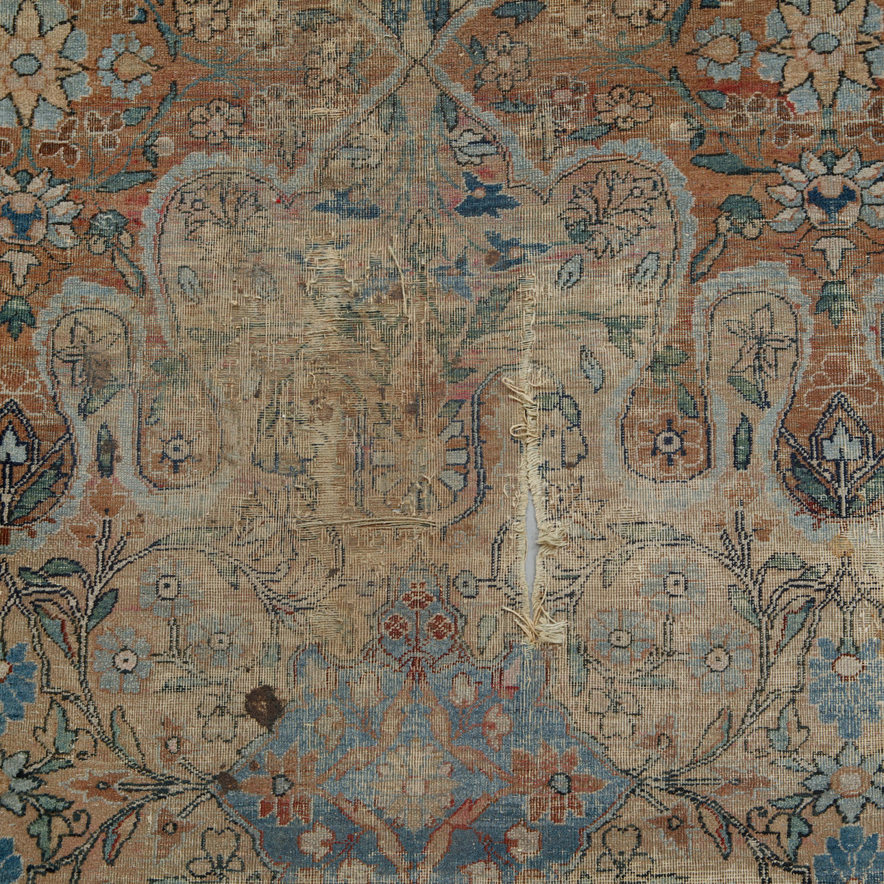 Kraftig slitage, skador, lagningar, hål, äldre malskador.