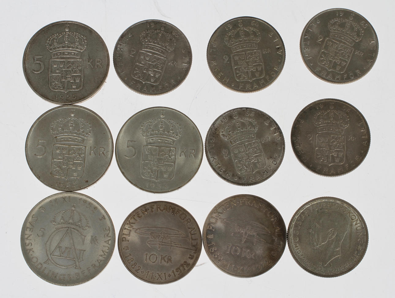 Mynt före 1966. 2 jubileumsmynt Sovjet och kungabröllop 1976.