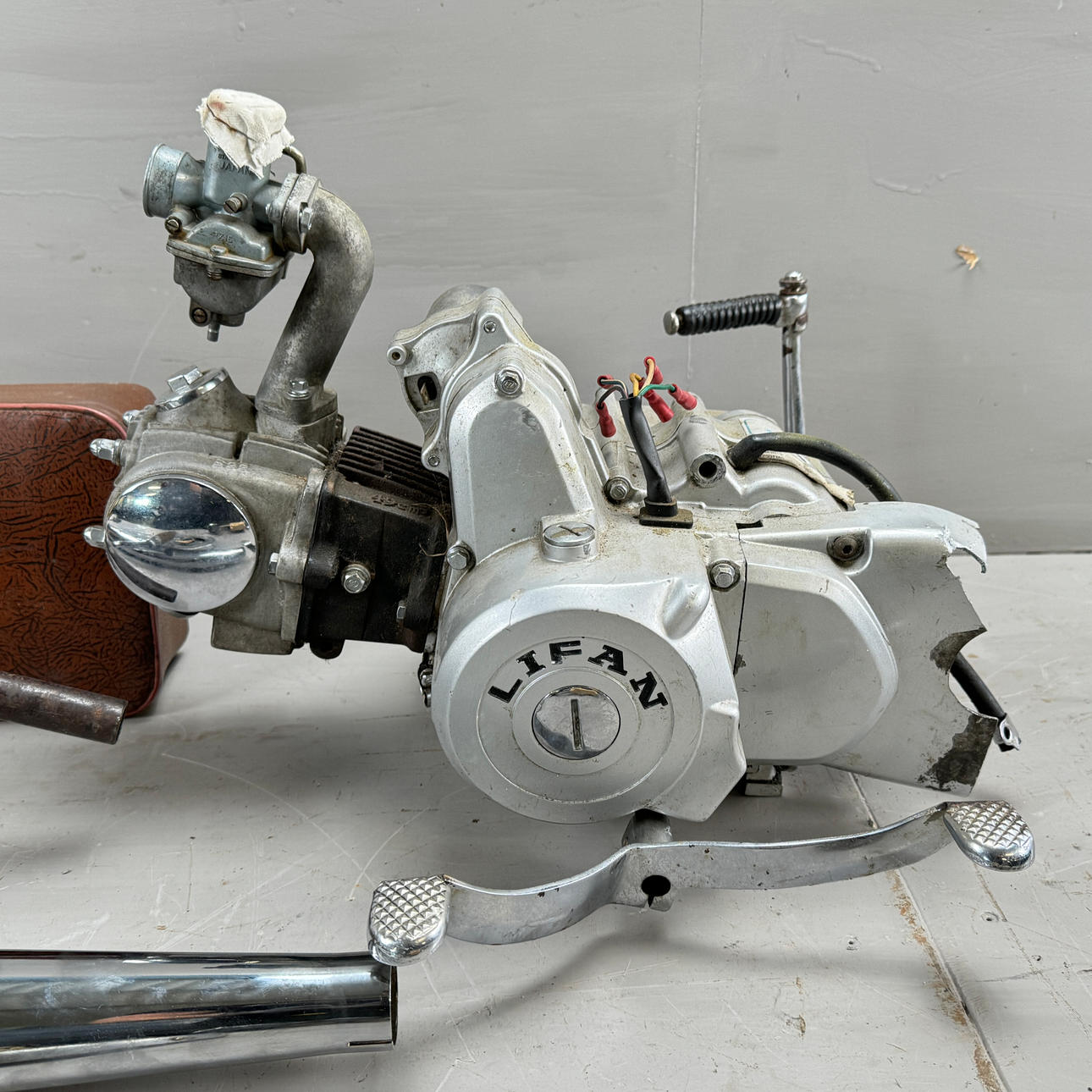 Motor: Lifan 50cc, motornummer:1P39FMB 81388208, Hastighetsmätare Nippon, ljuddämpare längd ca: 69cm