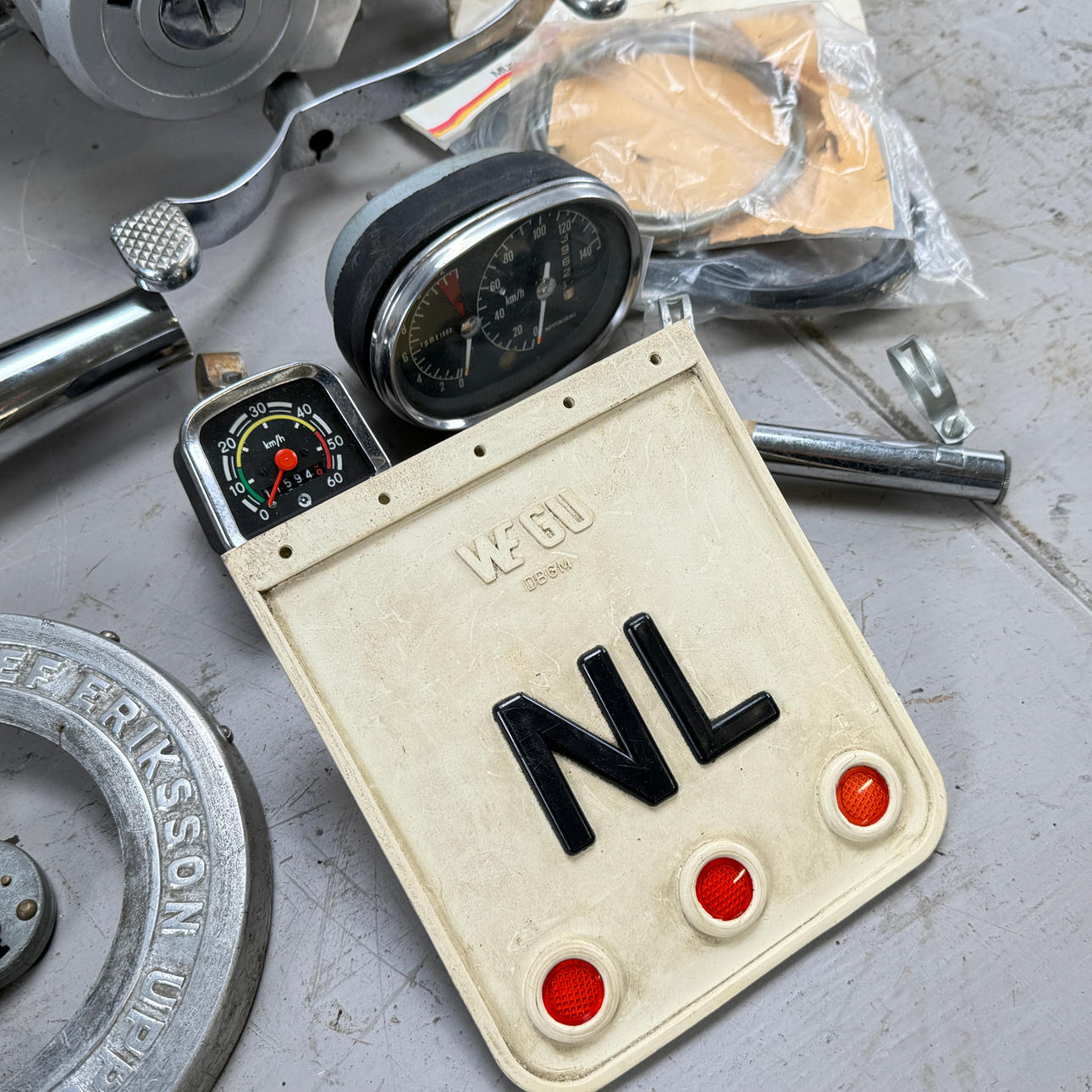Motor går runt. Hastighetsmätare och ljuddämpare i gott skick.