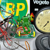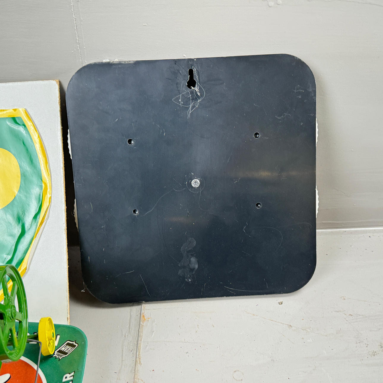 Bl.a datumvisare Vegete, skylt BP, trampcykelmodeller i tråd, askkoppar Gislaved, traktormodell John Deere, frimärken.