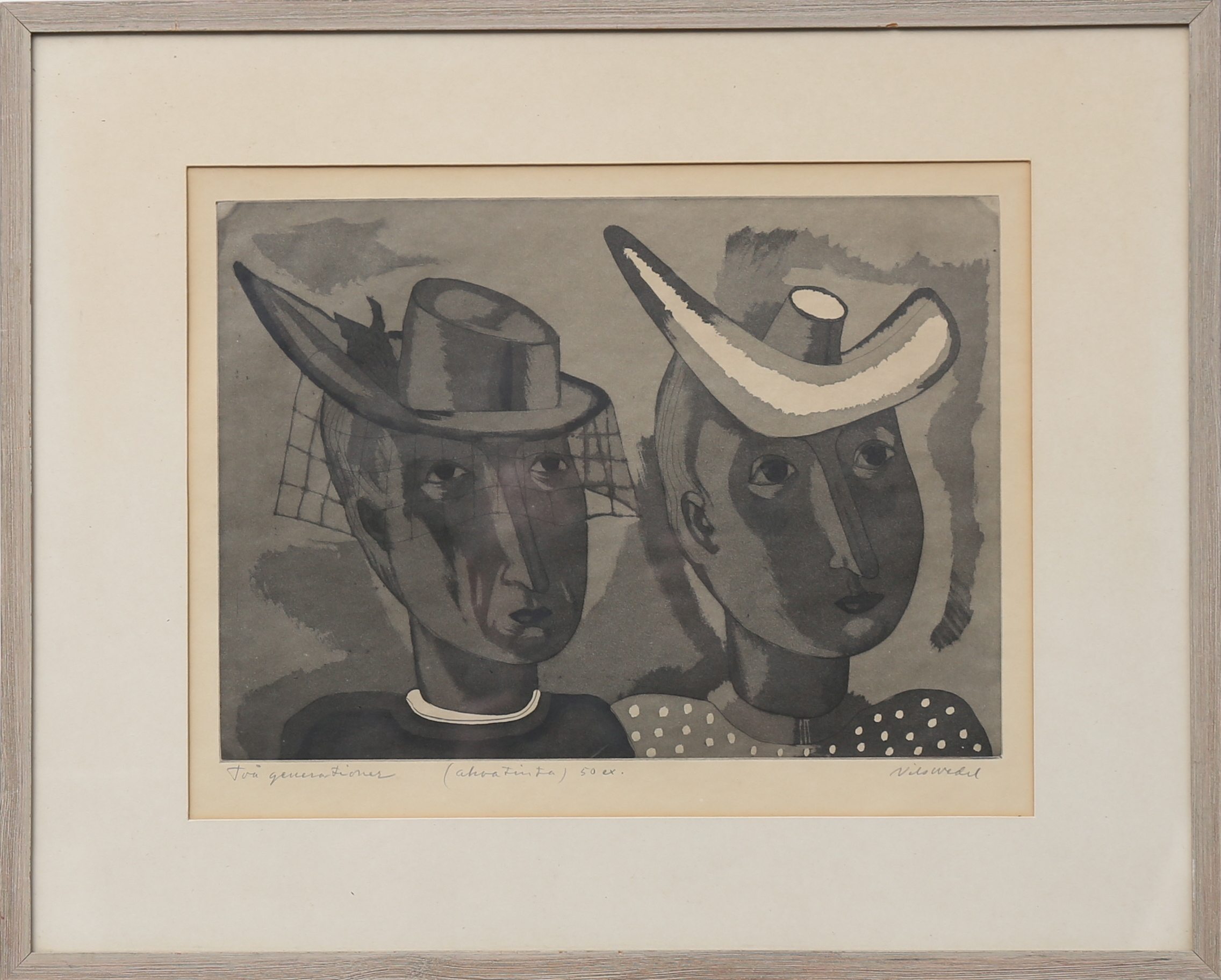 372284. NILS WEDEL. Två generationer, akvatint, signerad.