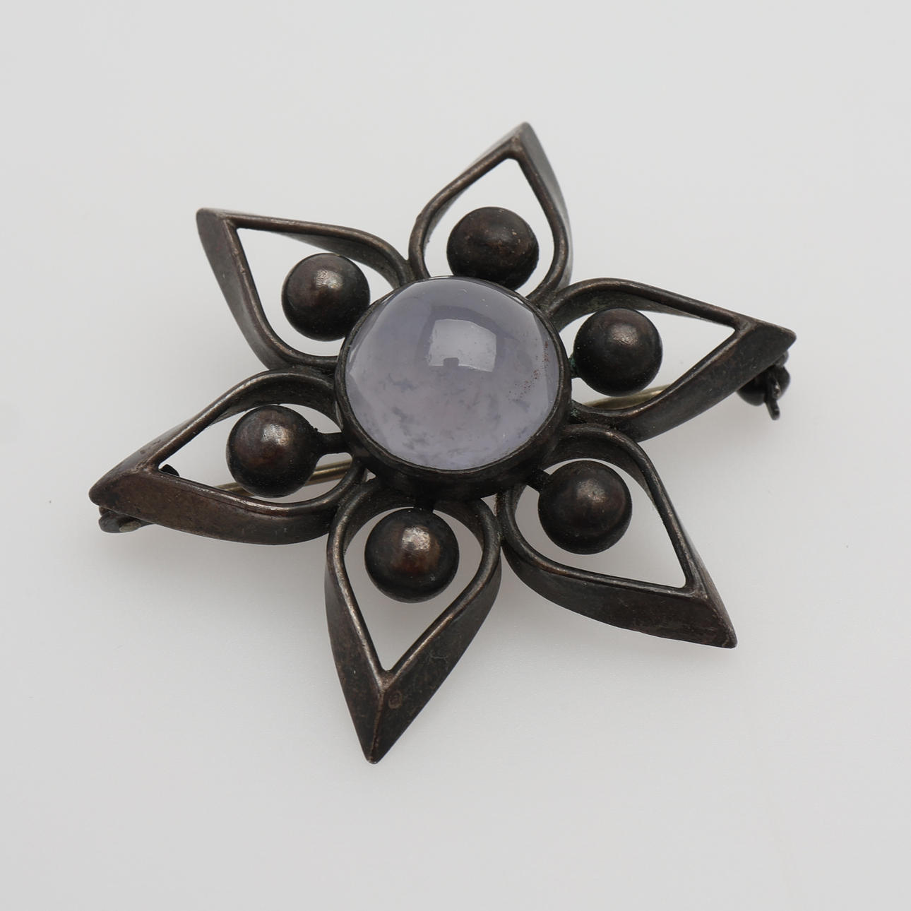 Brosch med cabochonslipad sten, silver 800/1000, 9,8 g.