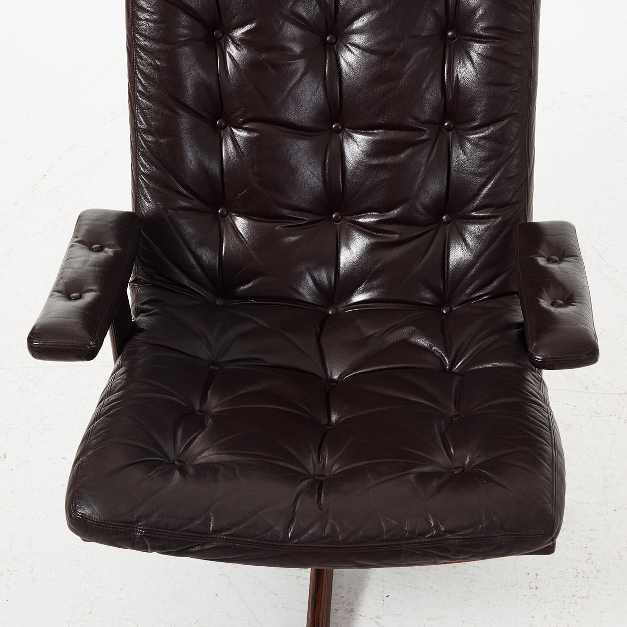 Snurrfåtölj med skinnklädsel, fotkryss med jakarandaimitation, sitthöjd ca 39cm.