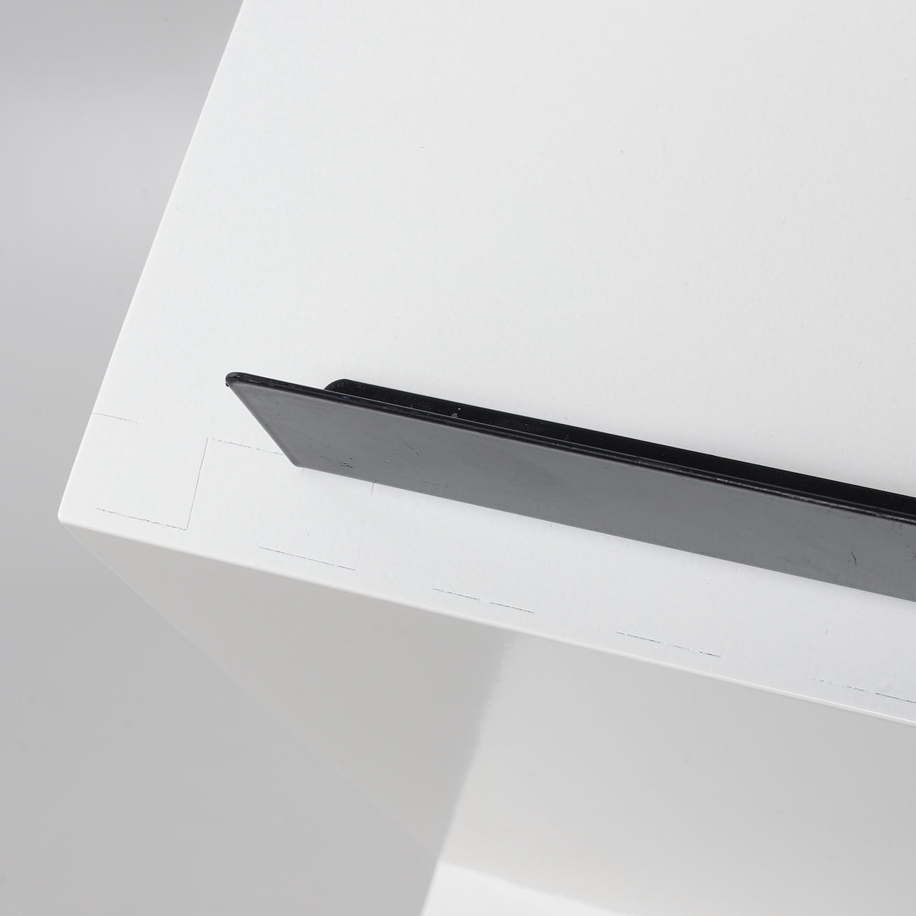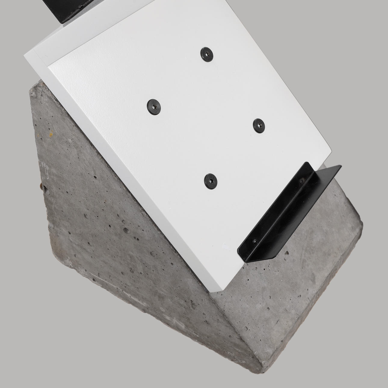 Fundament i betong. Vitlackerad hylla. Längd 27, bredd 35, höjd 155 cm.