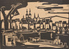 Hans Altmeier (1906-1979), stadsutsikt, linoryt, handavtryck av konstnären, signerad, ca. 34,5 x 43 cm, med ram bakom glas ca. 37,5 x 46 cm.