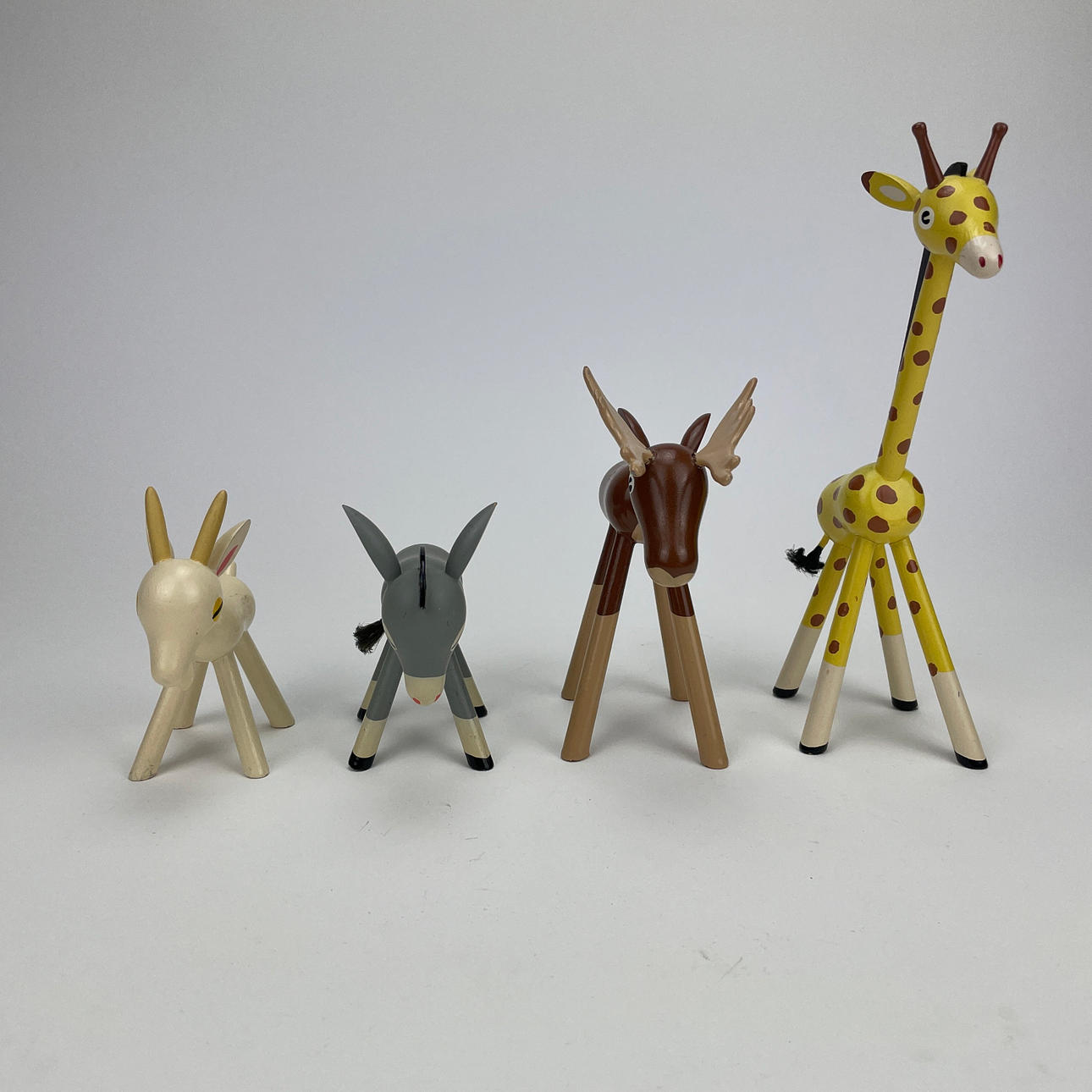 Giraff, åsna, get och älg. Höjd ca 10-22,5 cm.