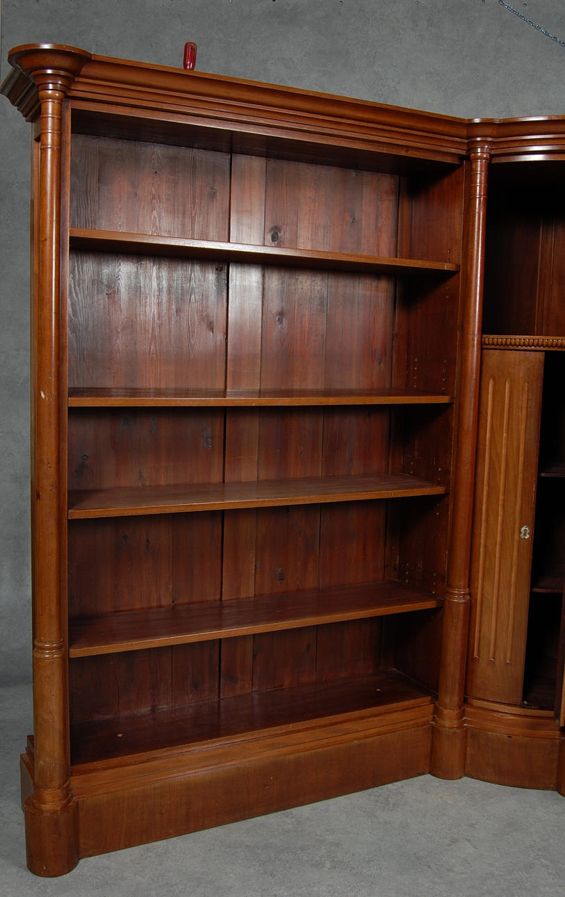 Bokhyllan är i fem delar = 3 st skåp , sockel, krön.