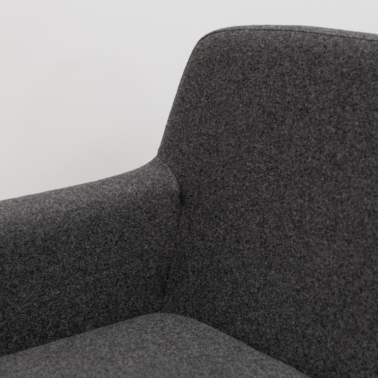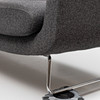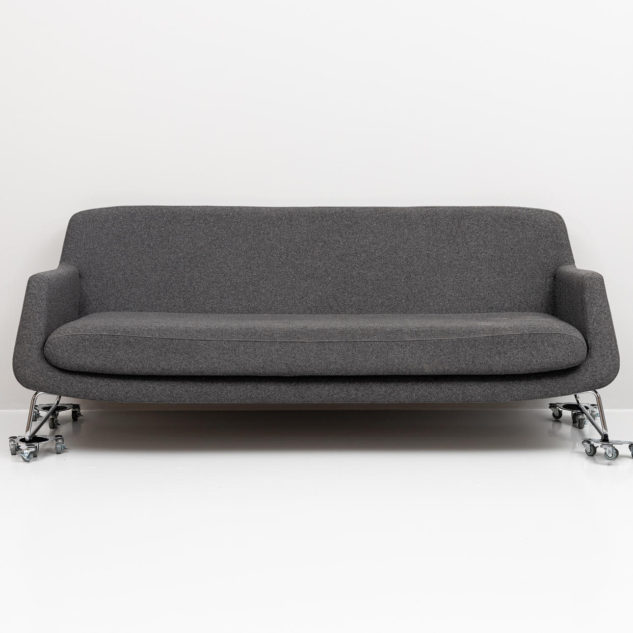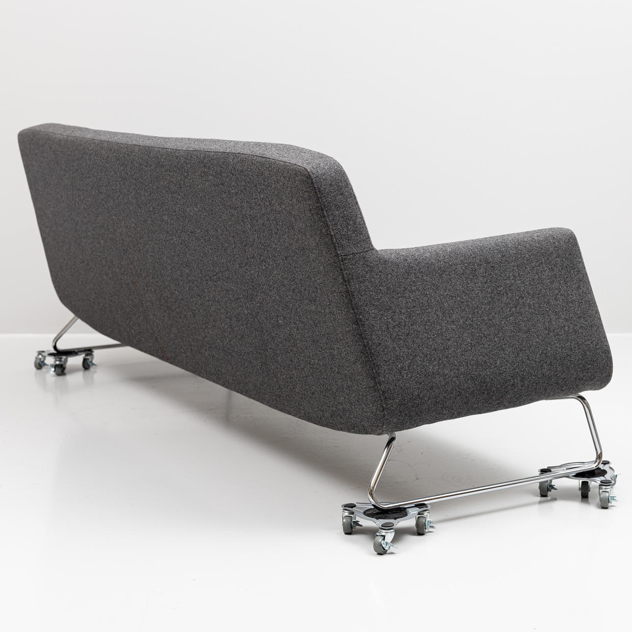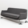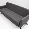 Grå klädsel, löstagbar sittplymå. Längd ca 205, djup 80, sitthöjd ca 41, rygghöjd 75 cm.