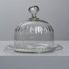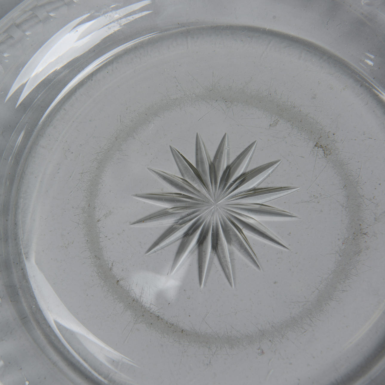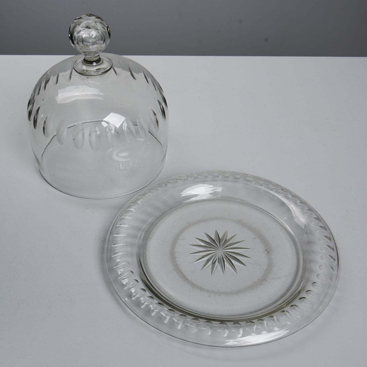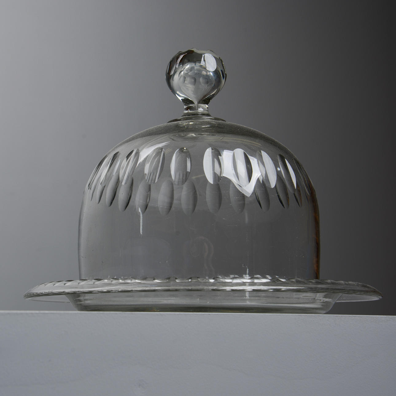 Rund kupa och underfat med slipad dekor.