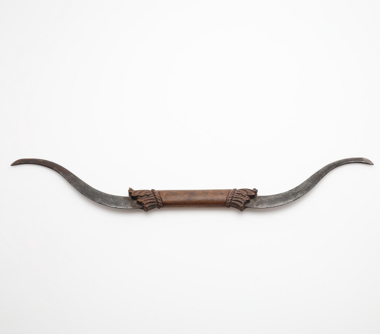 KURIOSITET, SMIDE MED TRÄSKURET HANDTAG. Antik.