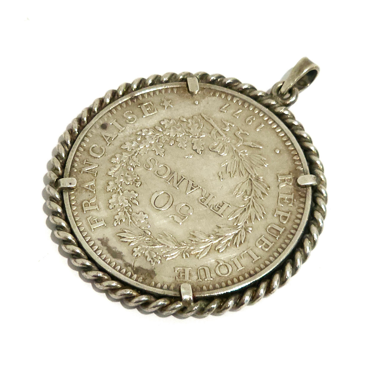 50 FRANC FRANSKT MYNT MED SILVERRAM.
