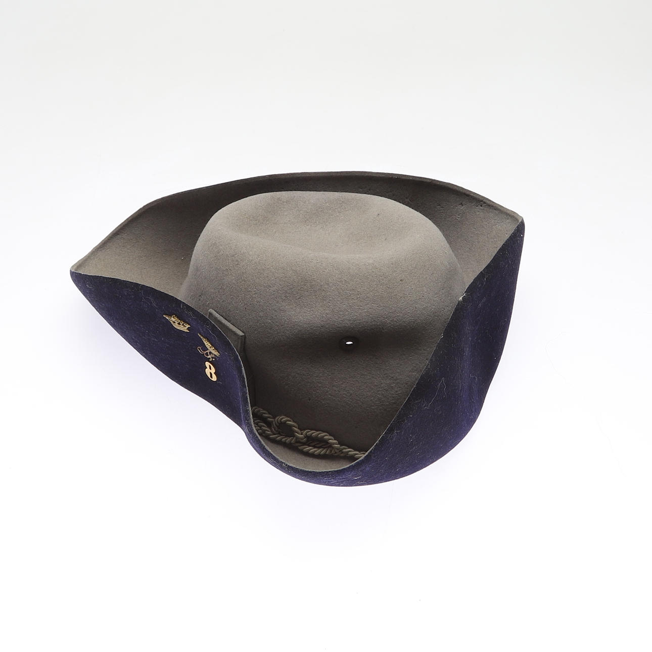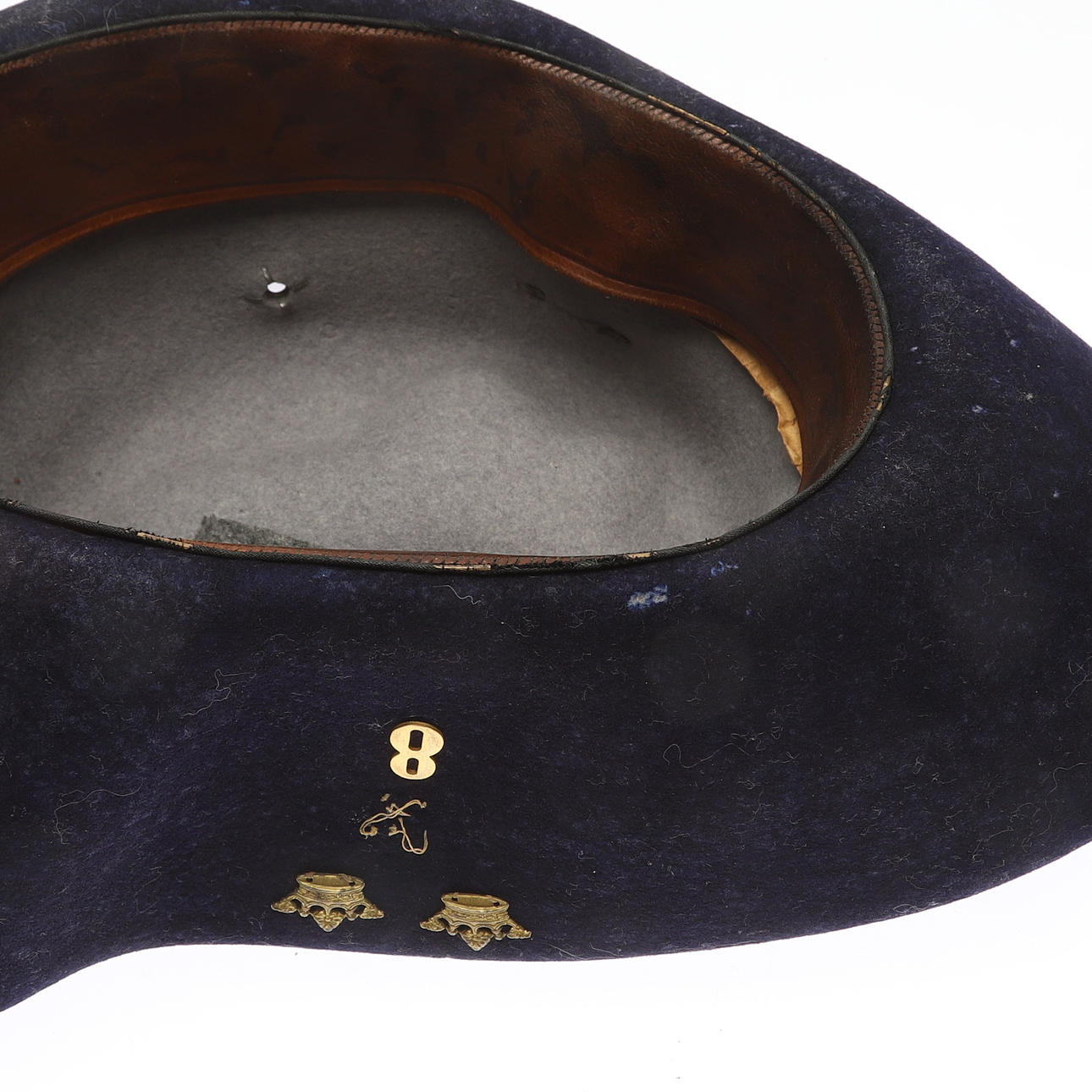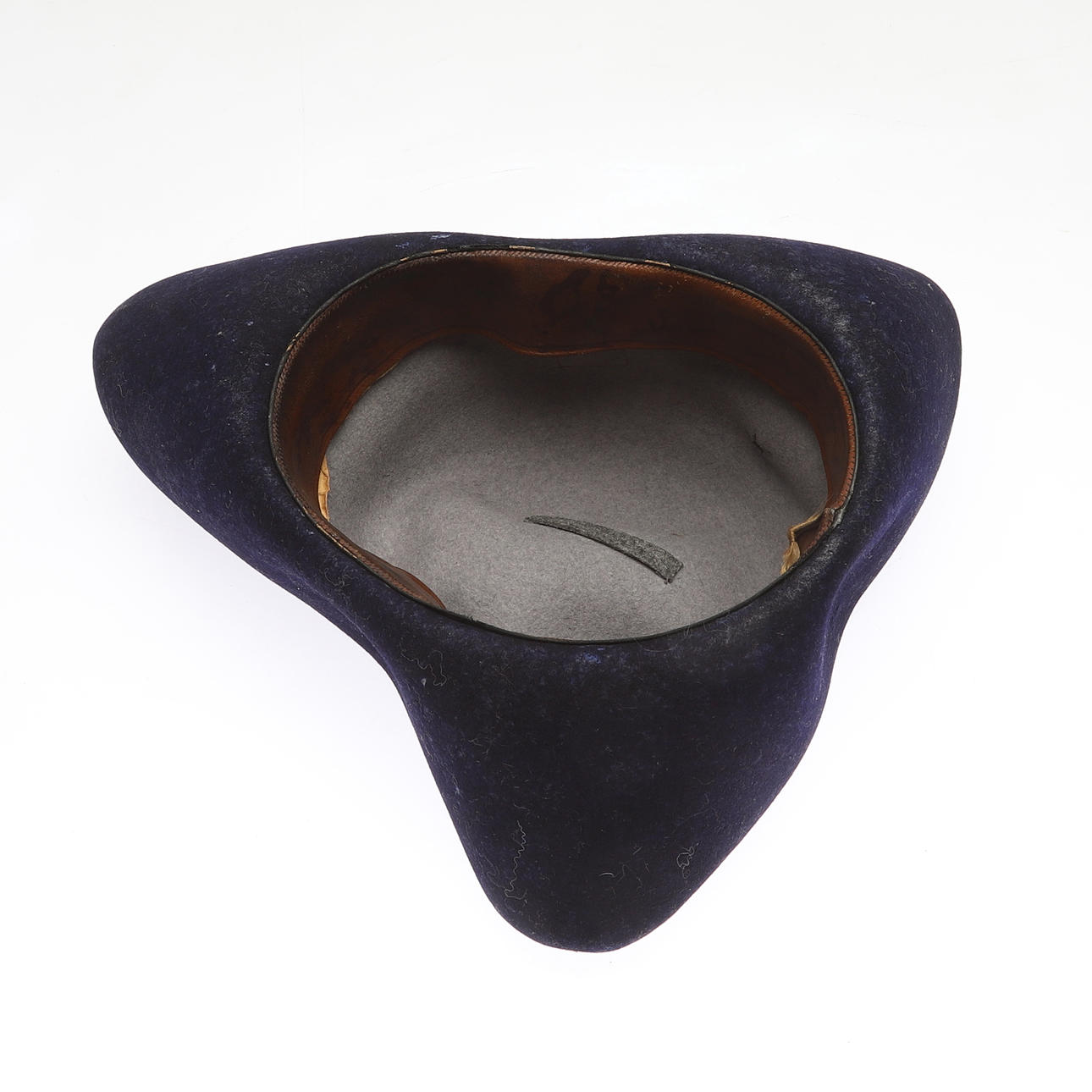 Trekanstmodell. Ylle, svettband i skinn. Diameter ca 30 cm.