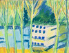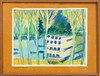 Betitlad á tergo: "Vitt bostadshus bakom trädstammar", dagermått 23x30 cm.