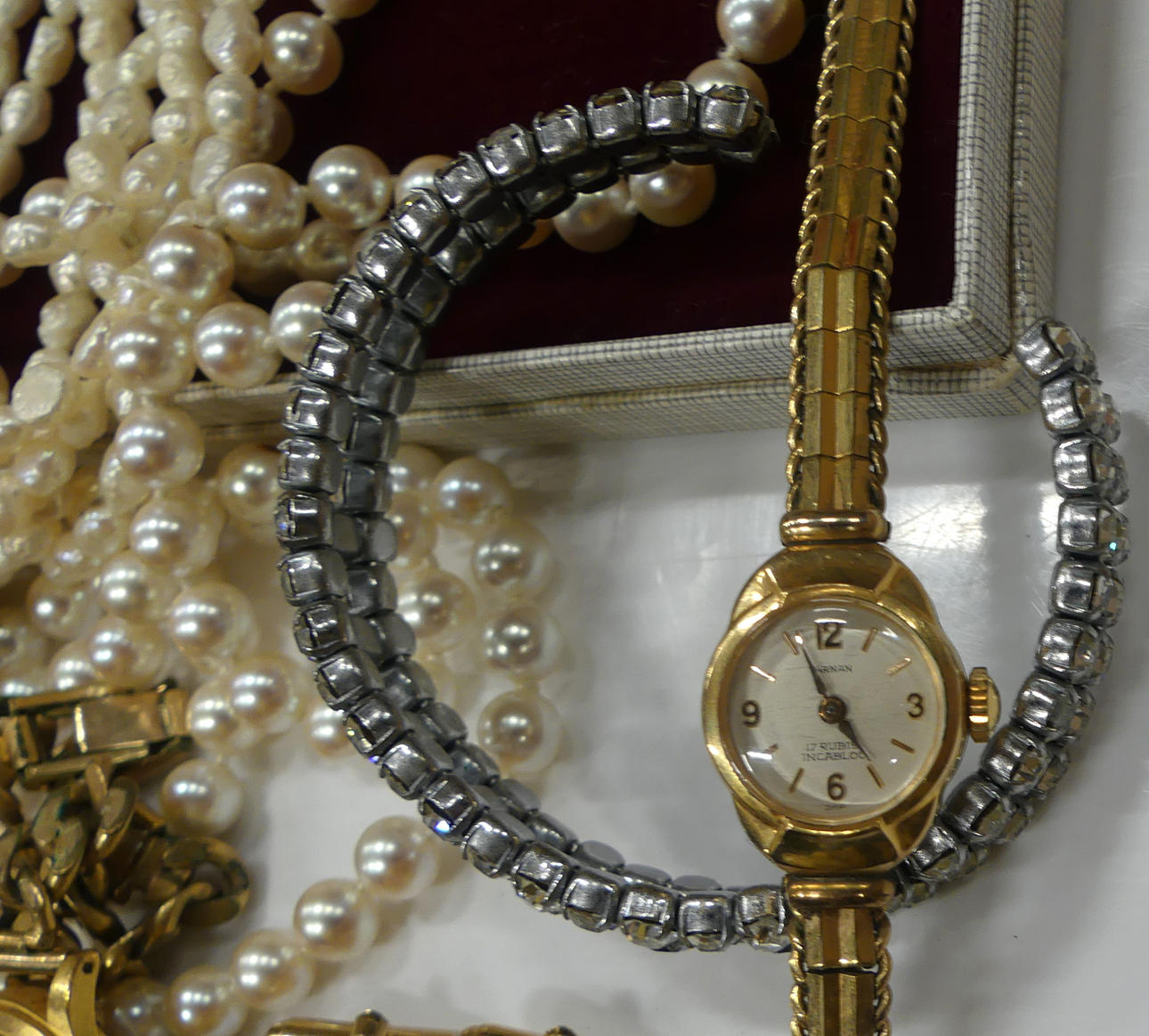 Pärlhalsband flerradigt: längd 57 cm.