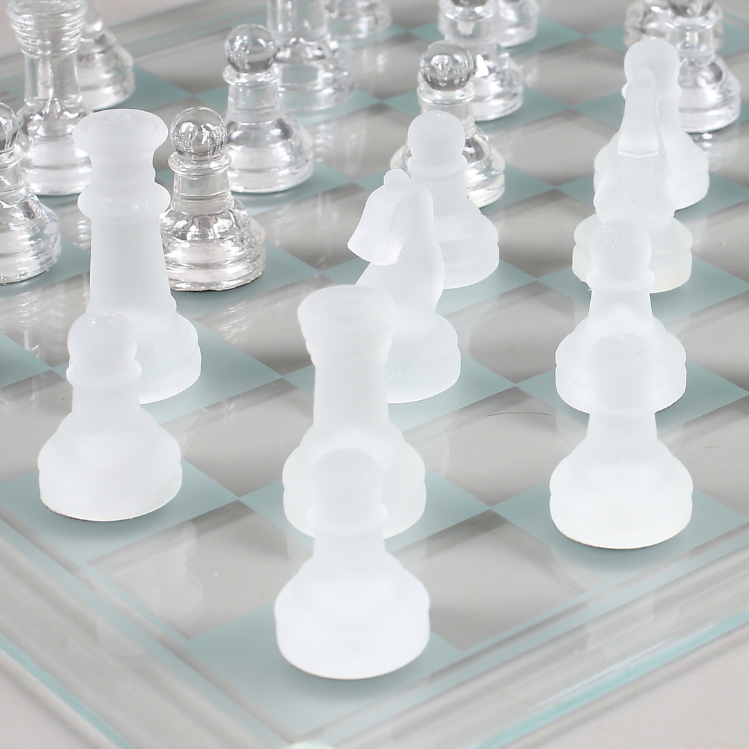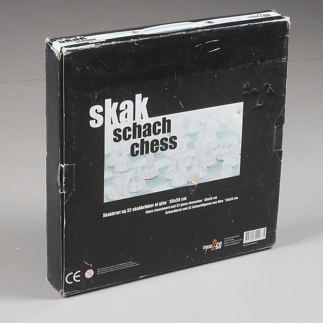 373948. SCHACKBRÄDE med PJÄSER, glas, sent 1900-tal/samtida.