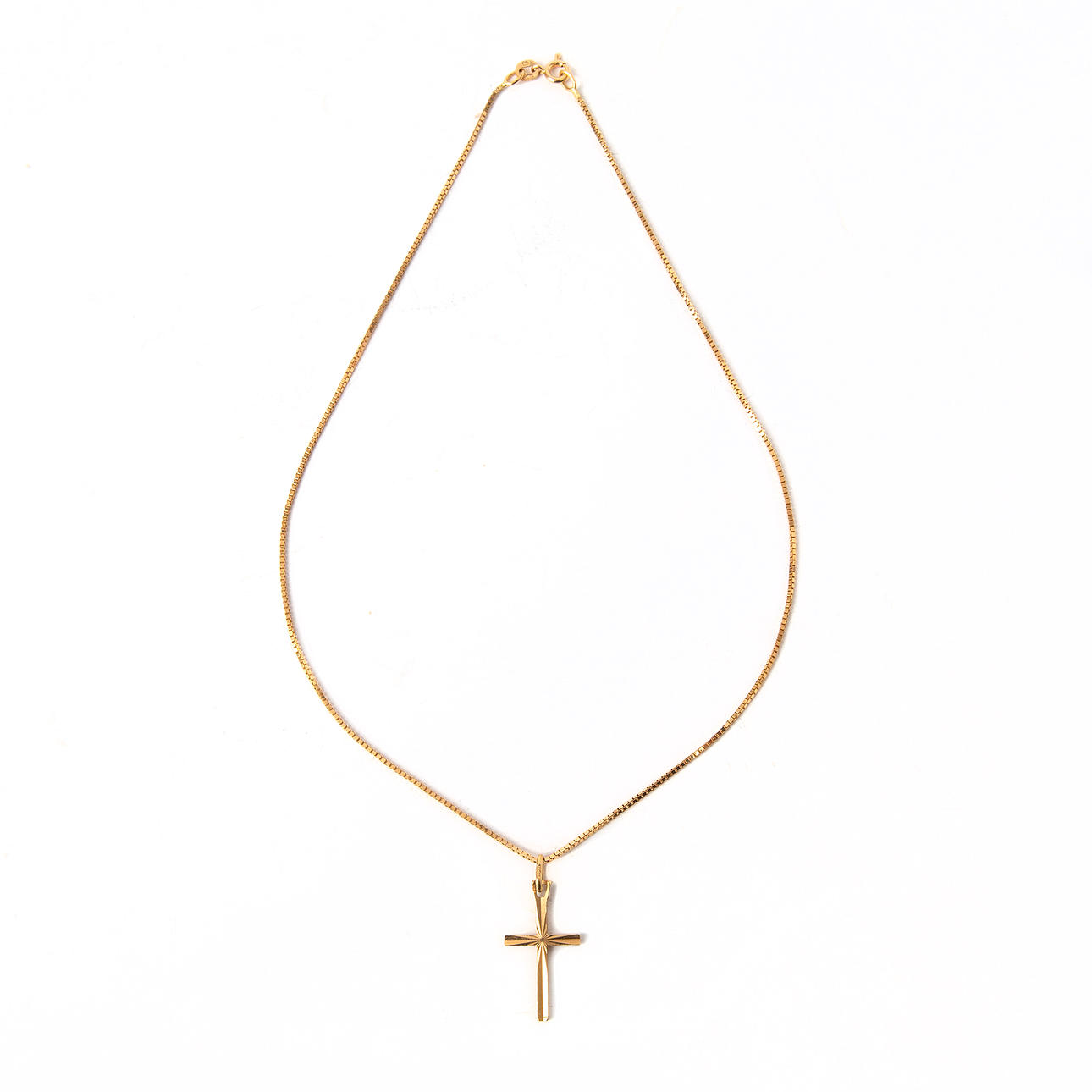 Hänge med höjd ca 3 cm. Kedja i 18K guld med längd ca 36 cm. Total vikt 4,1 gram.