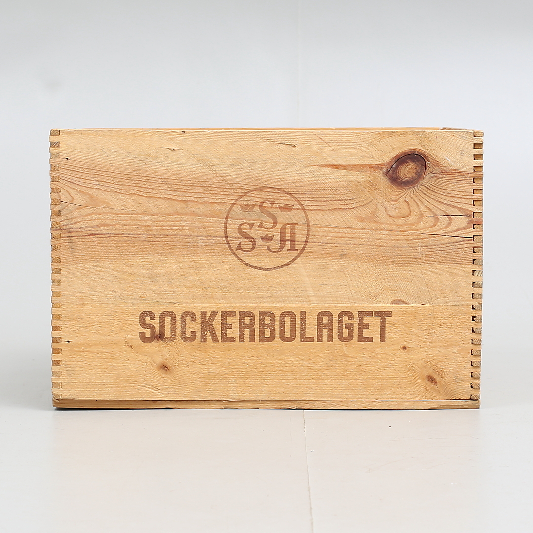 374110. SOCKERLÅDA, trä, Sockerbolaget SSA, bitsocker 30 kg.