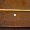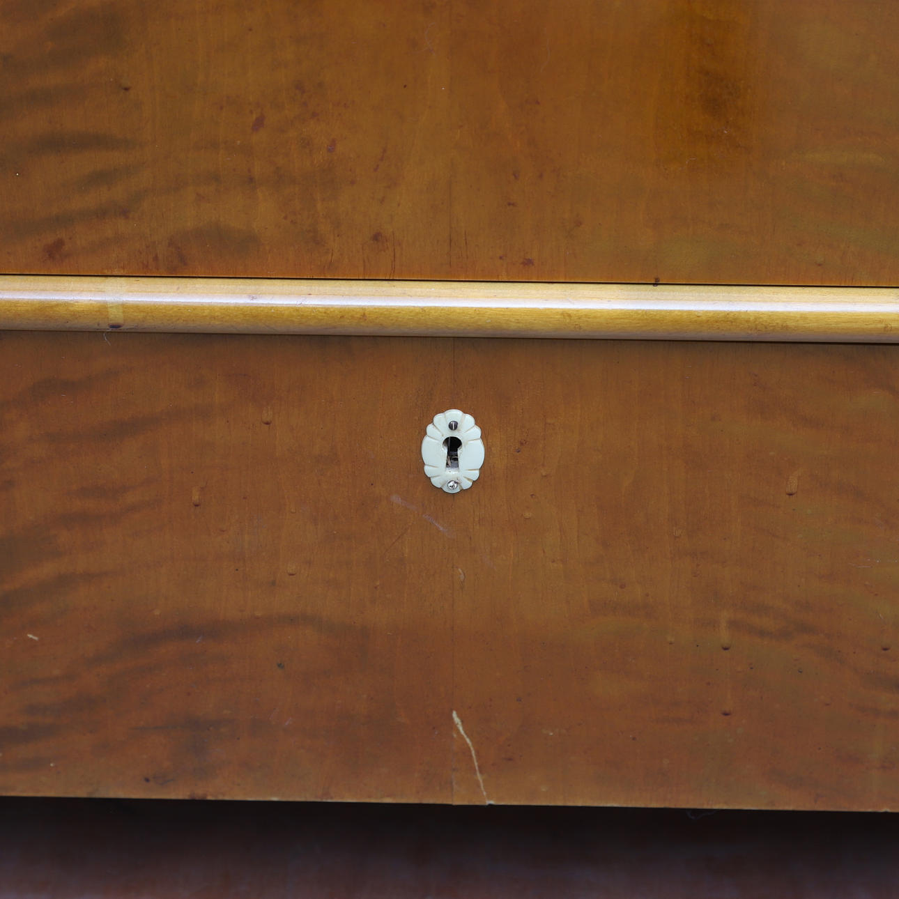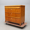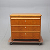 Fanerad med björk. Skuren dekor. Längd ca 104, bredd 47, höjd 90 cm.