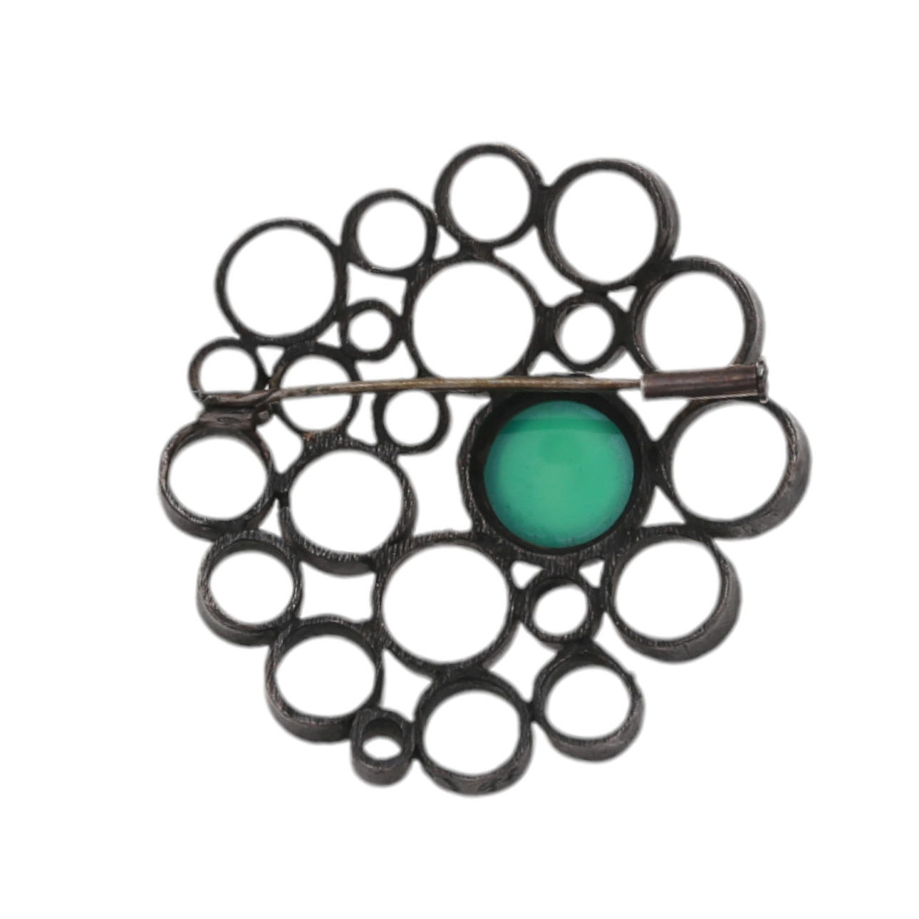 Rund cabochonslipad silver och krysopras. 4,6 x 4,5 cm. 17,4 gr.