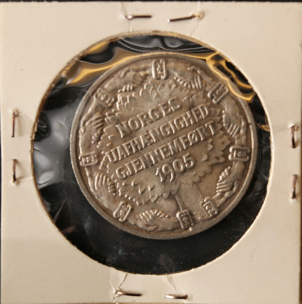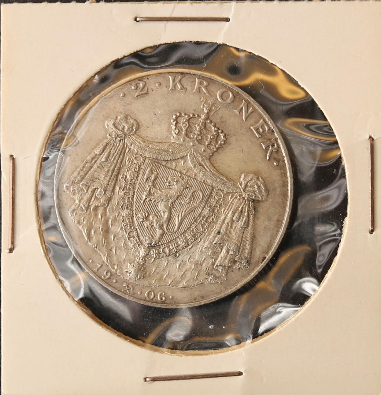 Tvåkrona 1906 jubileumsmynt Norges självständighet kval 01