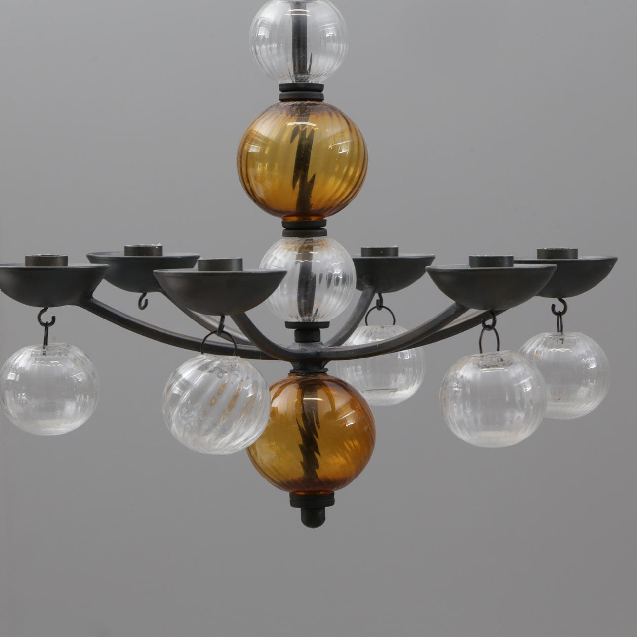 TAKLAMPA, glas/järn, Bodasmide, ca 1960.