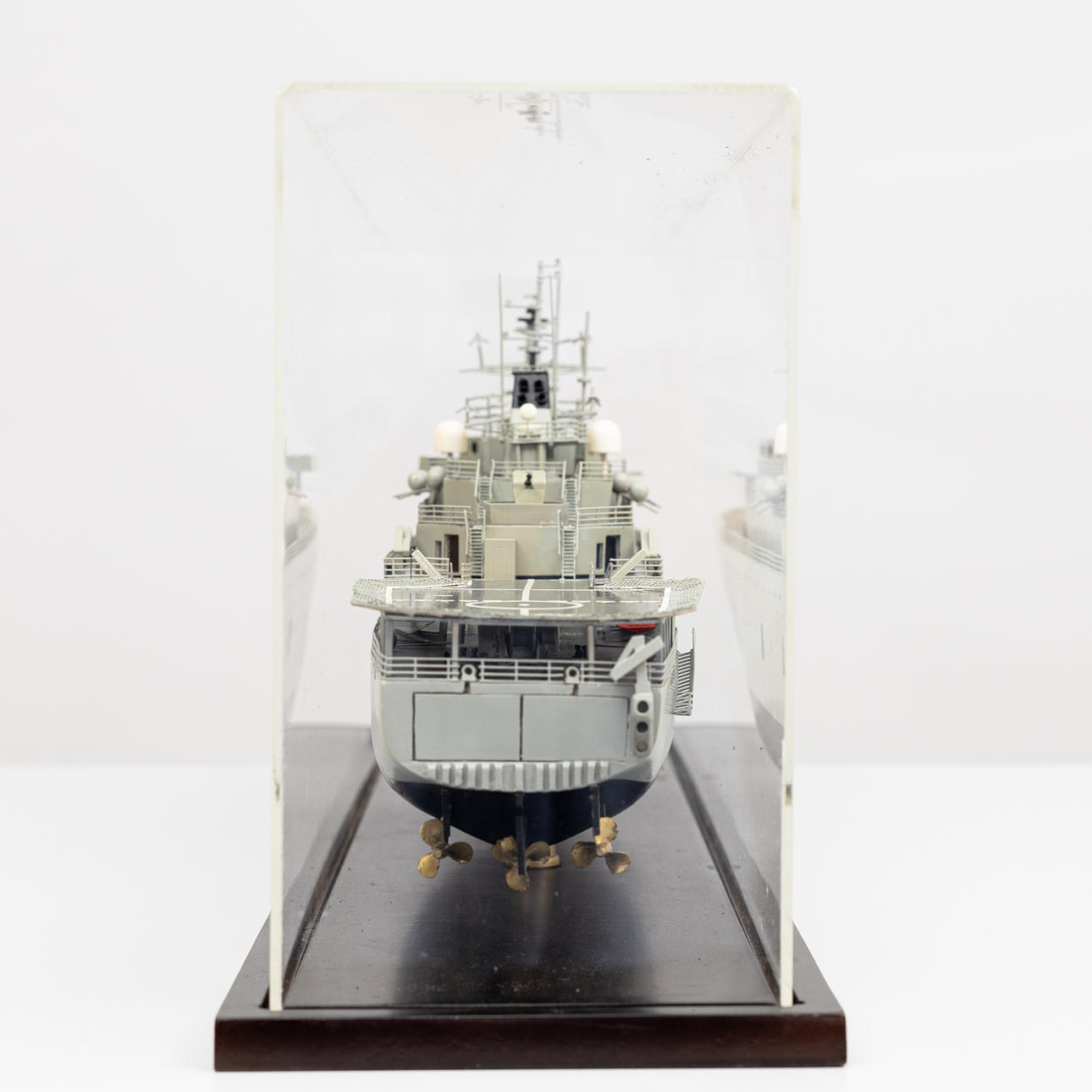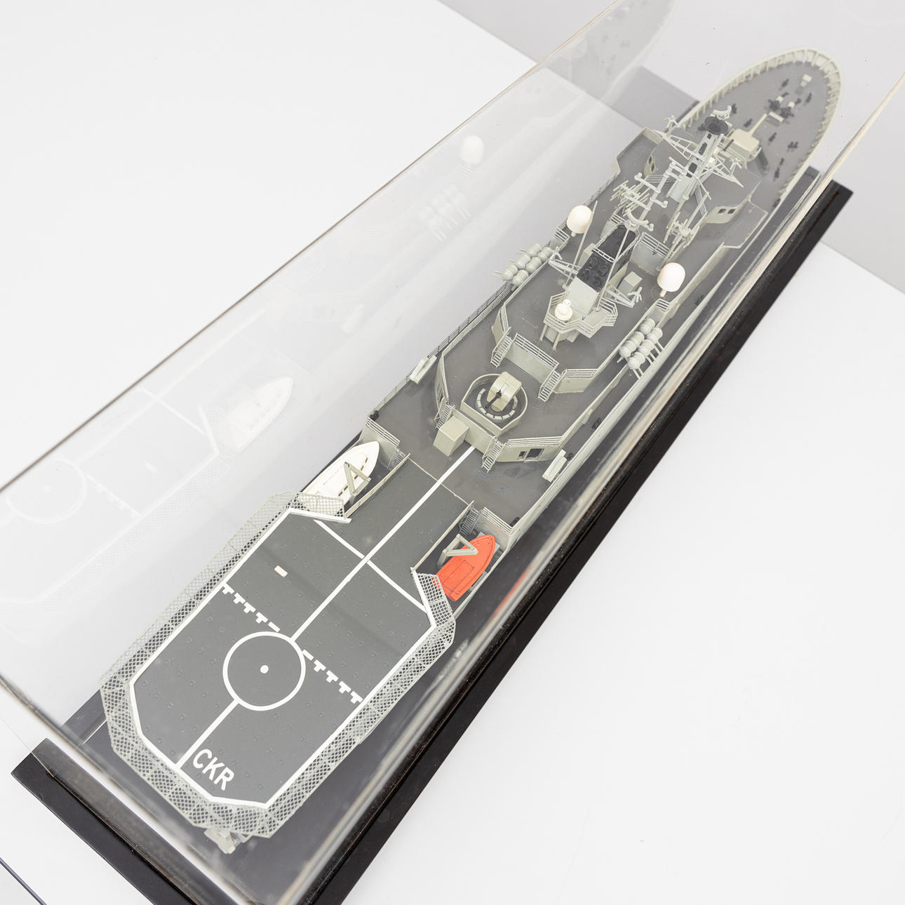 Längd 74, monter av plexiglas, 83x19, höjd 28 cm.