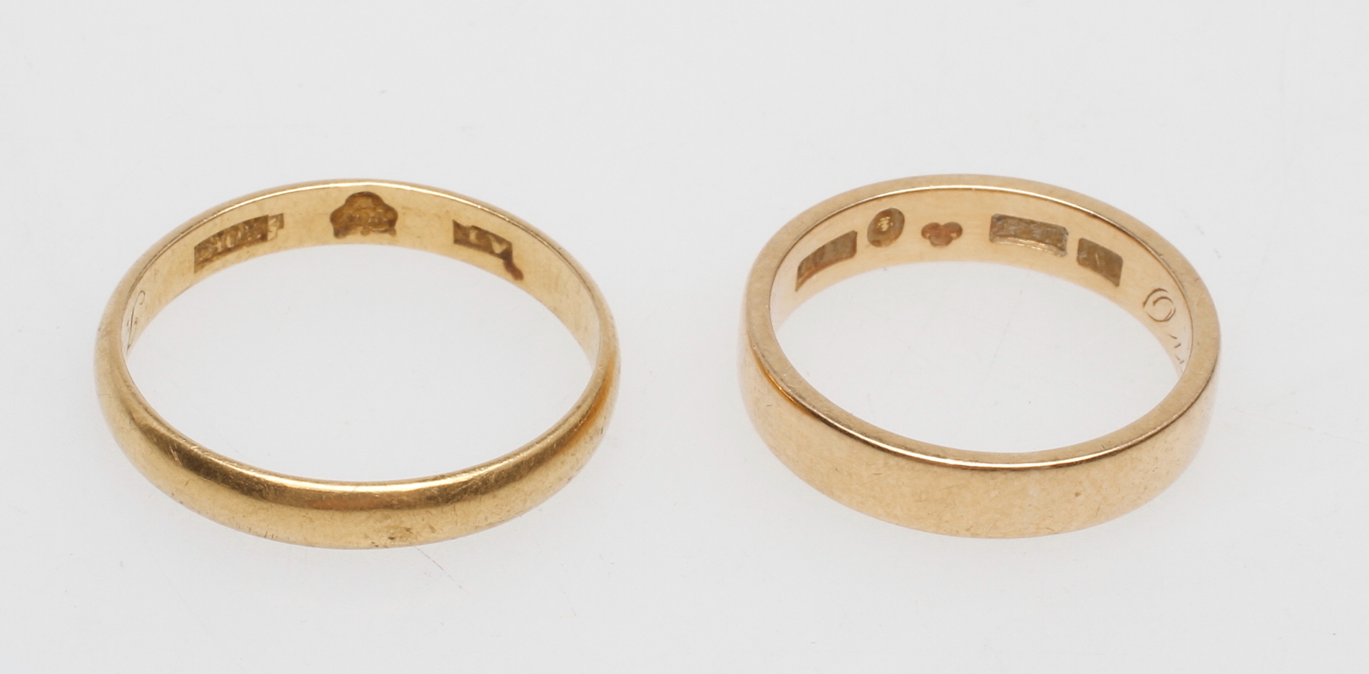374732. RINGAR, 2 st, 18-20k guld, total vikt ca 6,7 gr.