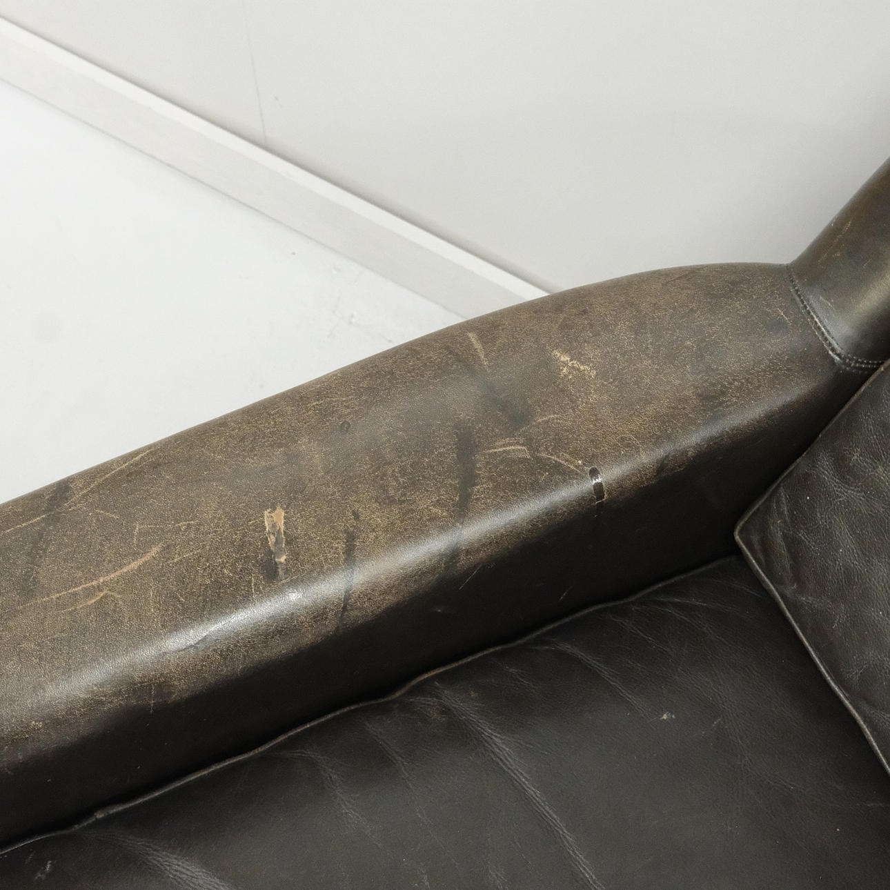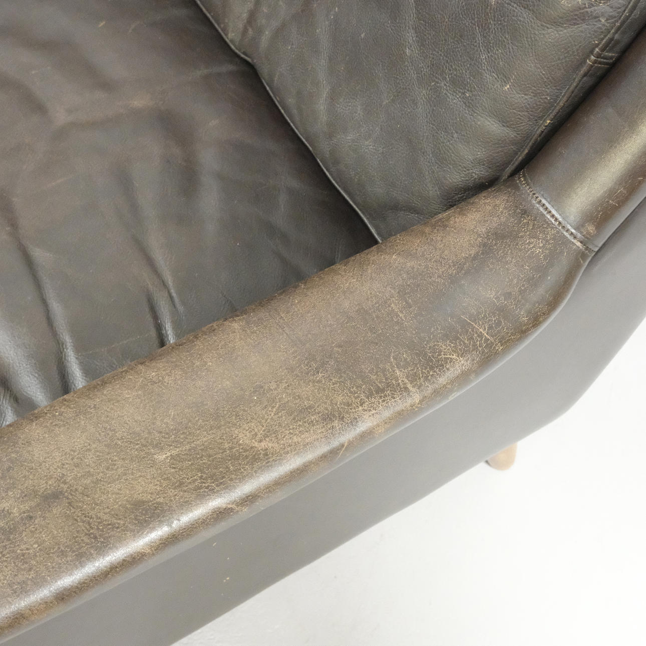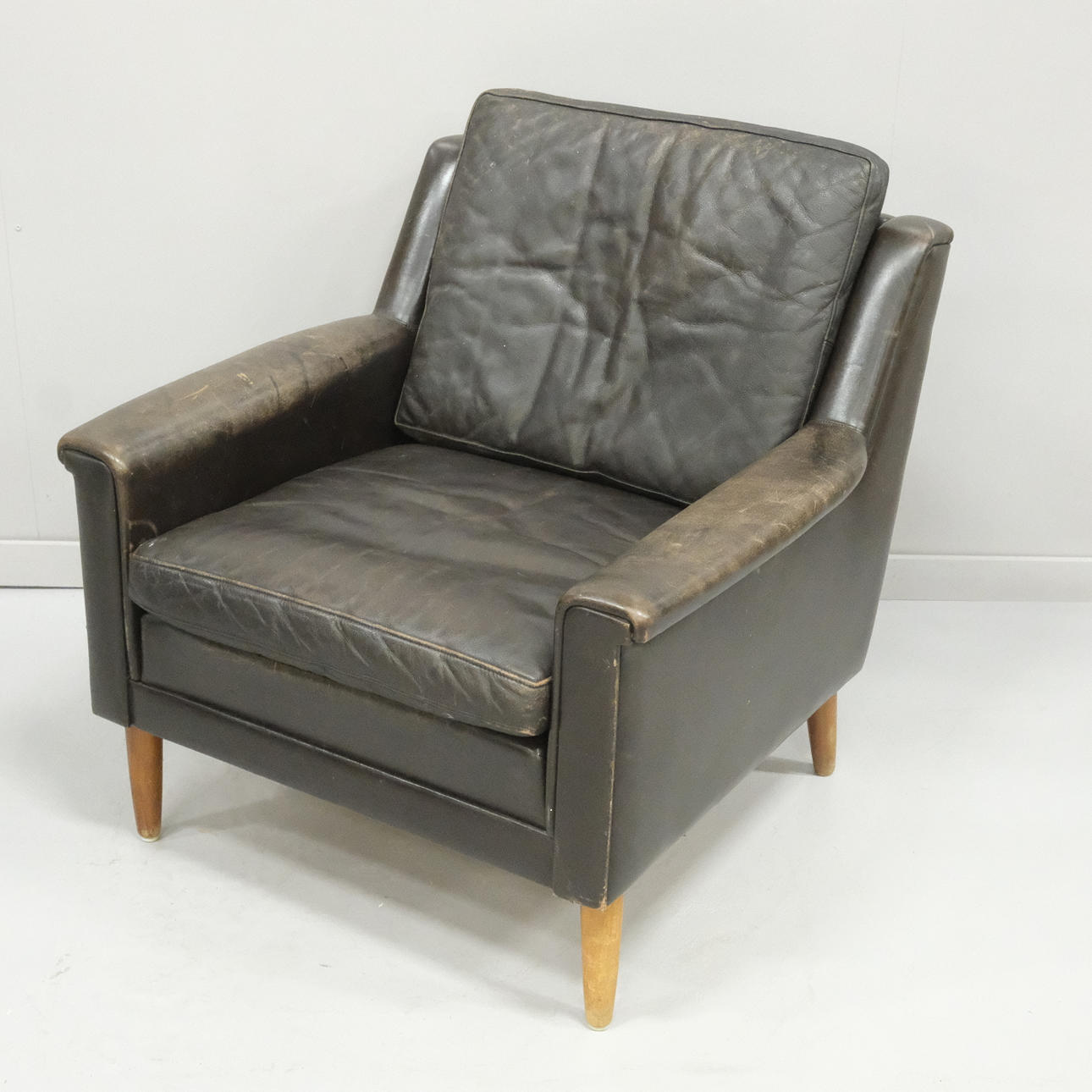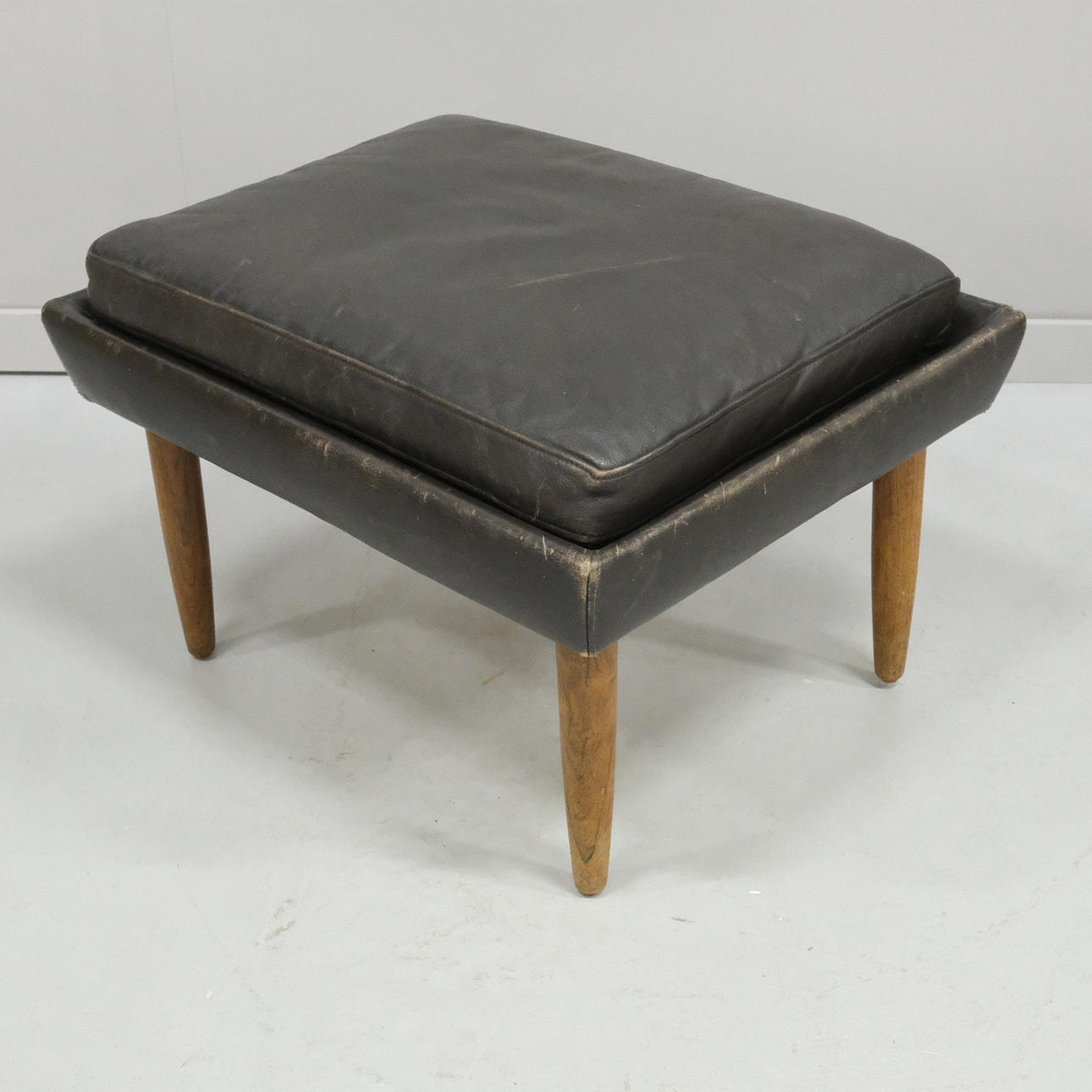 SKINNFÅTÖLJ MED PALL. 1960-TAL.