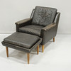 3748892. SKINNFÅTÖLJ MED PALL. 1960-TAL.