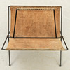 Tidningshylla med beige mocka, metallram och svartmålad, ca. H 48 x B 43 x D 41,5 cm.